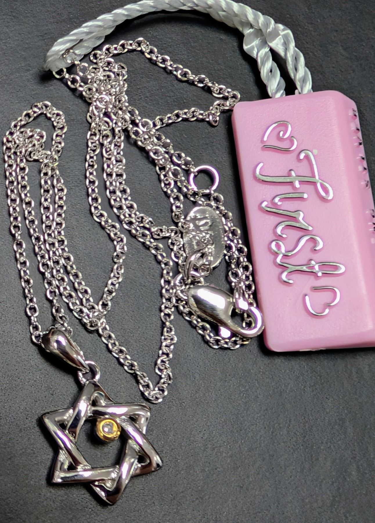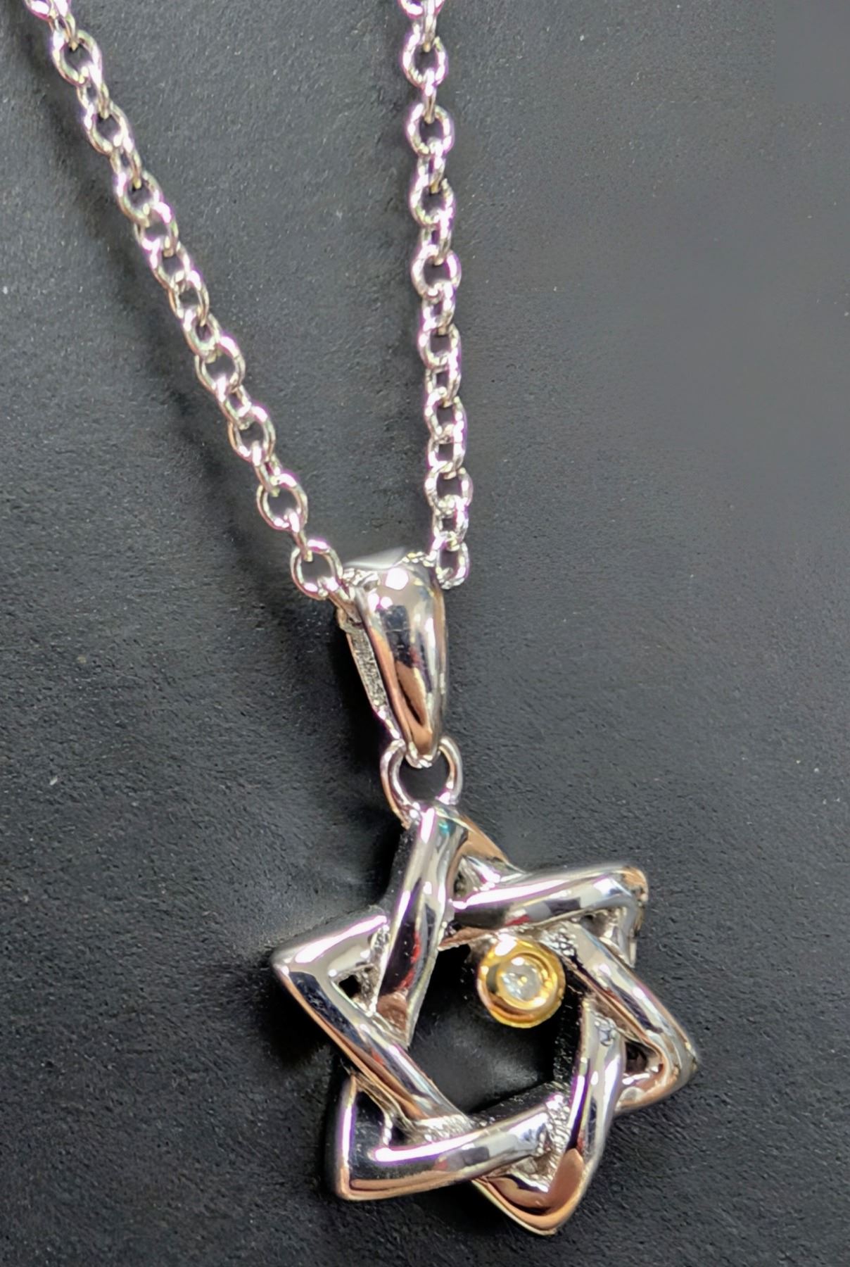 SILVER(2.71G), NATURAL DIAMOND (0.01CT) NECKLACE 15"