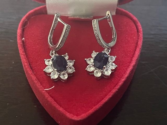 SILVER(2.8G), SAPPHIRE (2CT) EARRING, SUGGESTED RETAIL VALUE $240