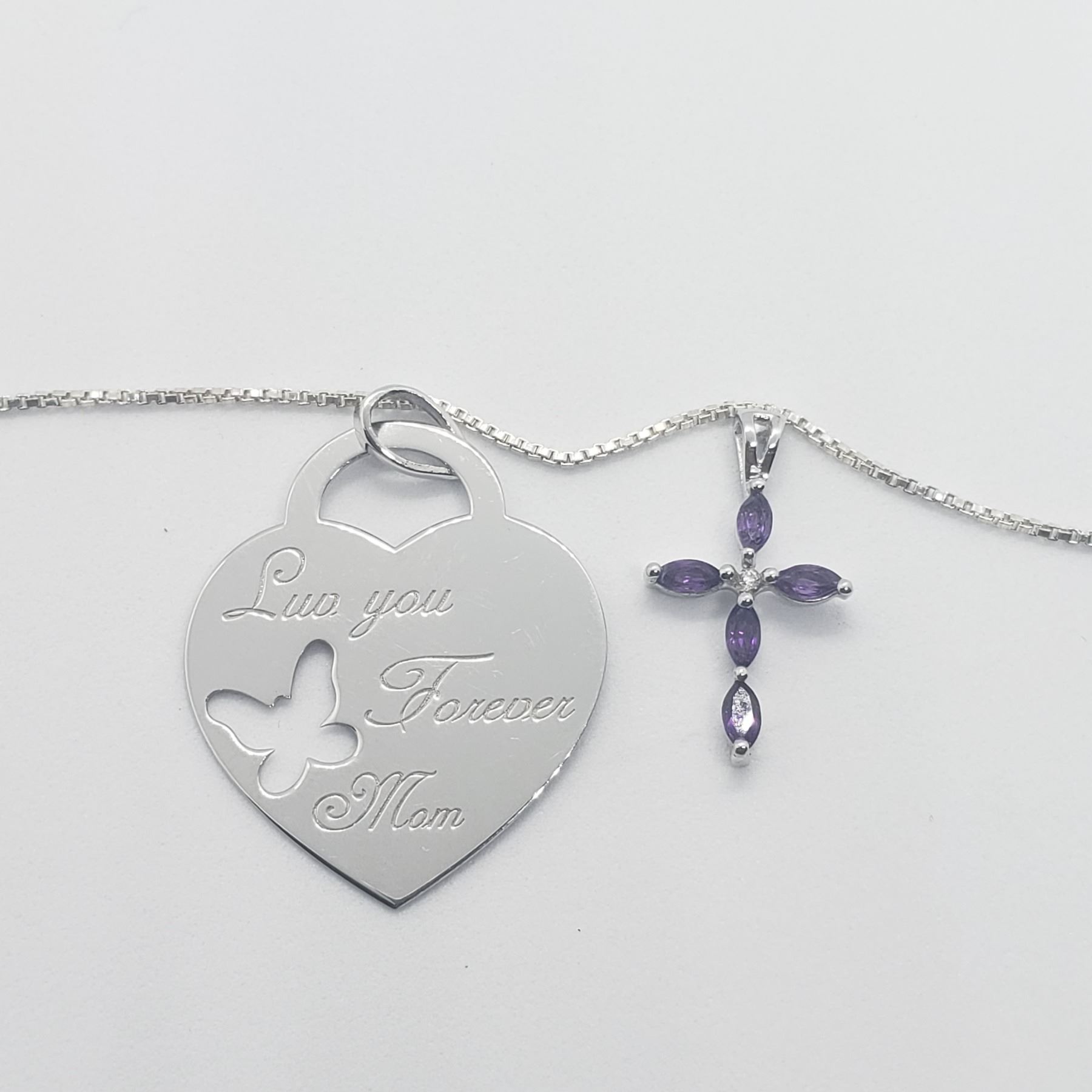 SILVER 2 PENDENT(AMETHYST) 18" NECKLACE