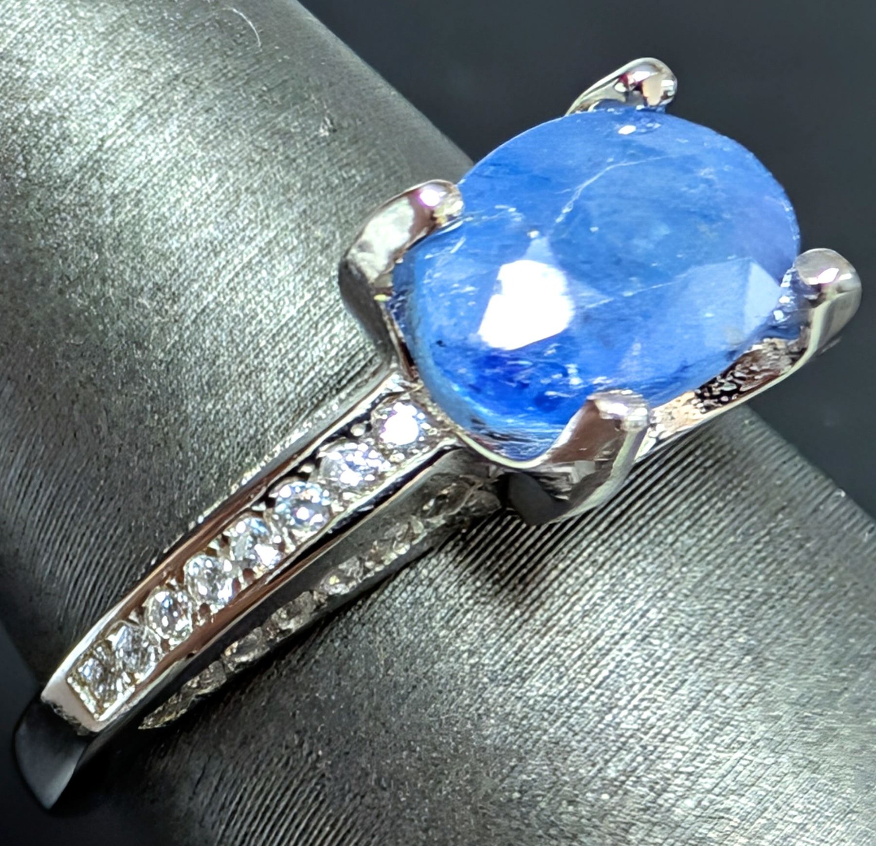 SILVER(3.76G), BLUE SAPPHIRE (2CT) RING, SUGGESTED RETAIL VALUE $300