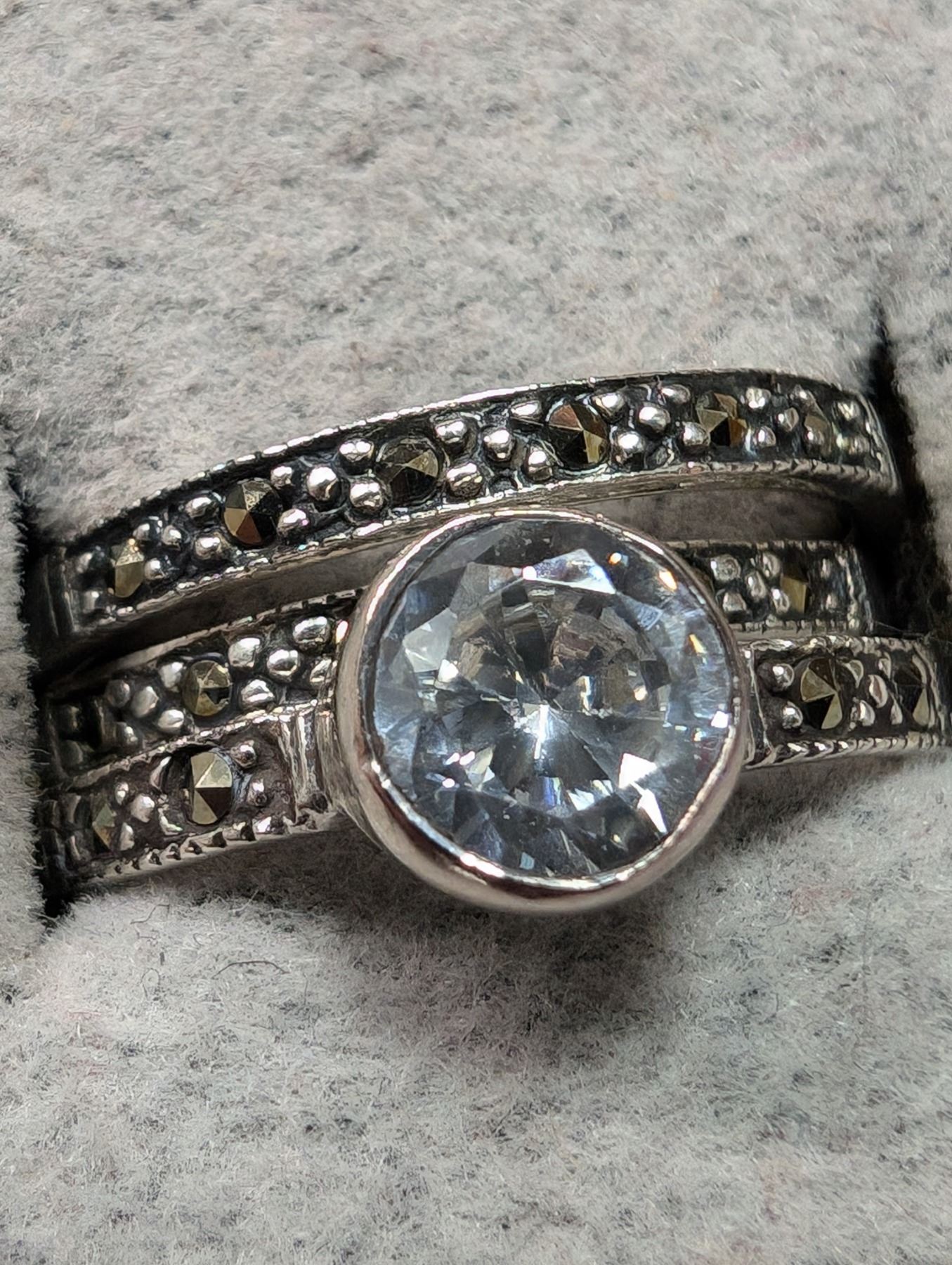 SILVER 3 RING MARCASITE RING, SUGGESTED RETAIL VALUE $200