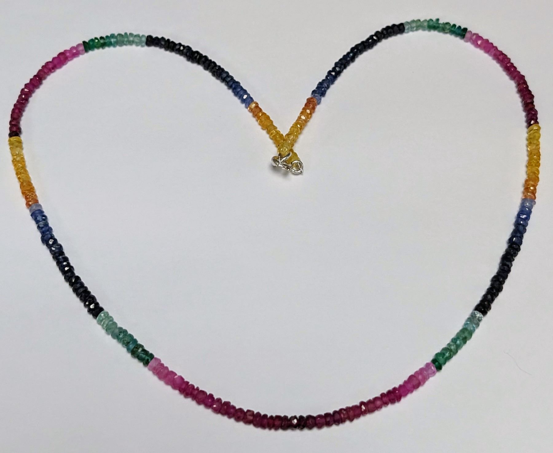 SILVER 37CT NATURAL EMERALD SAPPHIRE AND RUBY 16" NECKLACE