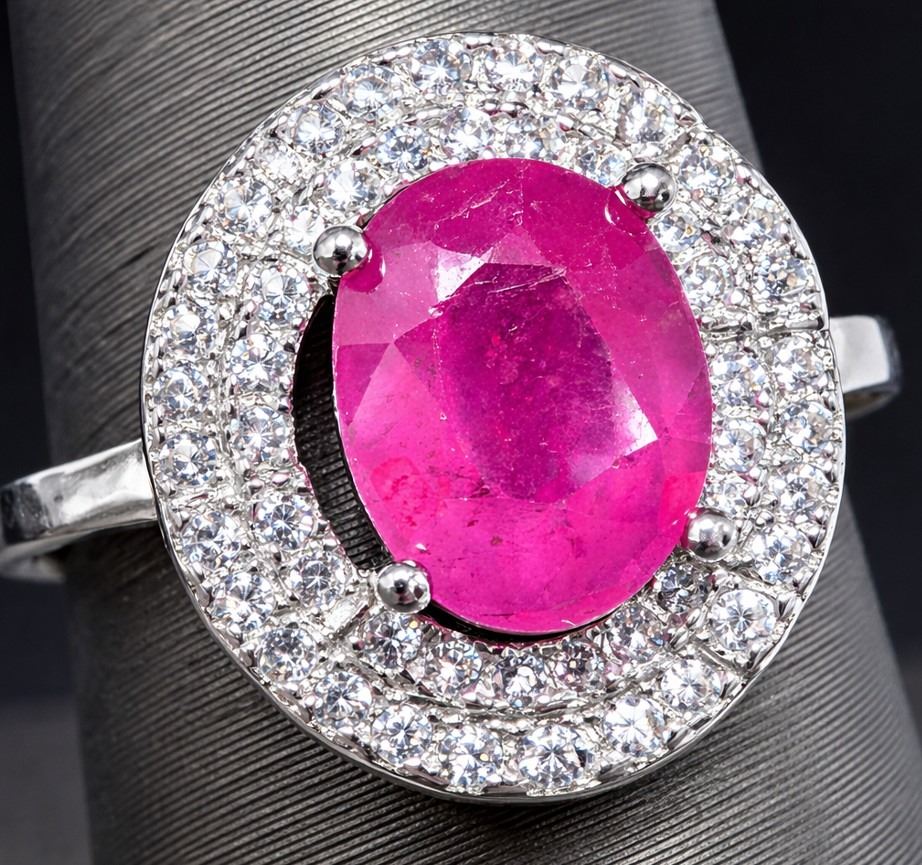 SILVER(4.1G), RUBY (2CT)RING, SIZE , SUGGESTED RETAIL VALUE $360