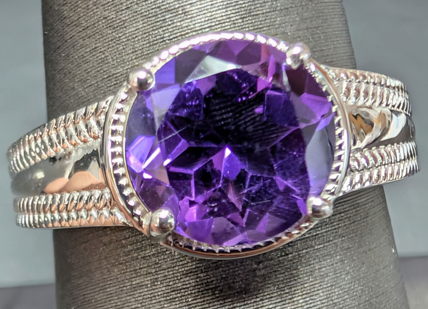 SILVER(4.27G), AMETHYST (2CT) RING, SUGGESTED RETAIL VALUE $320