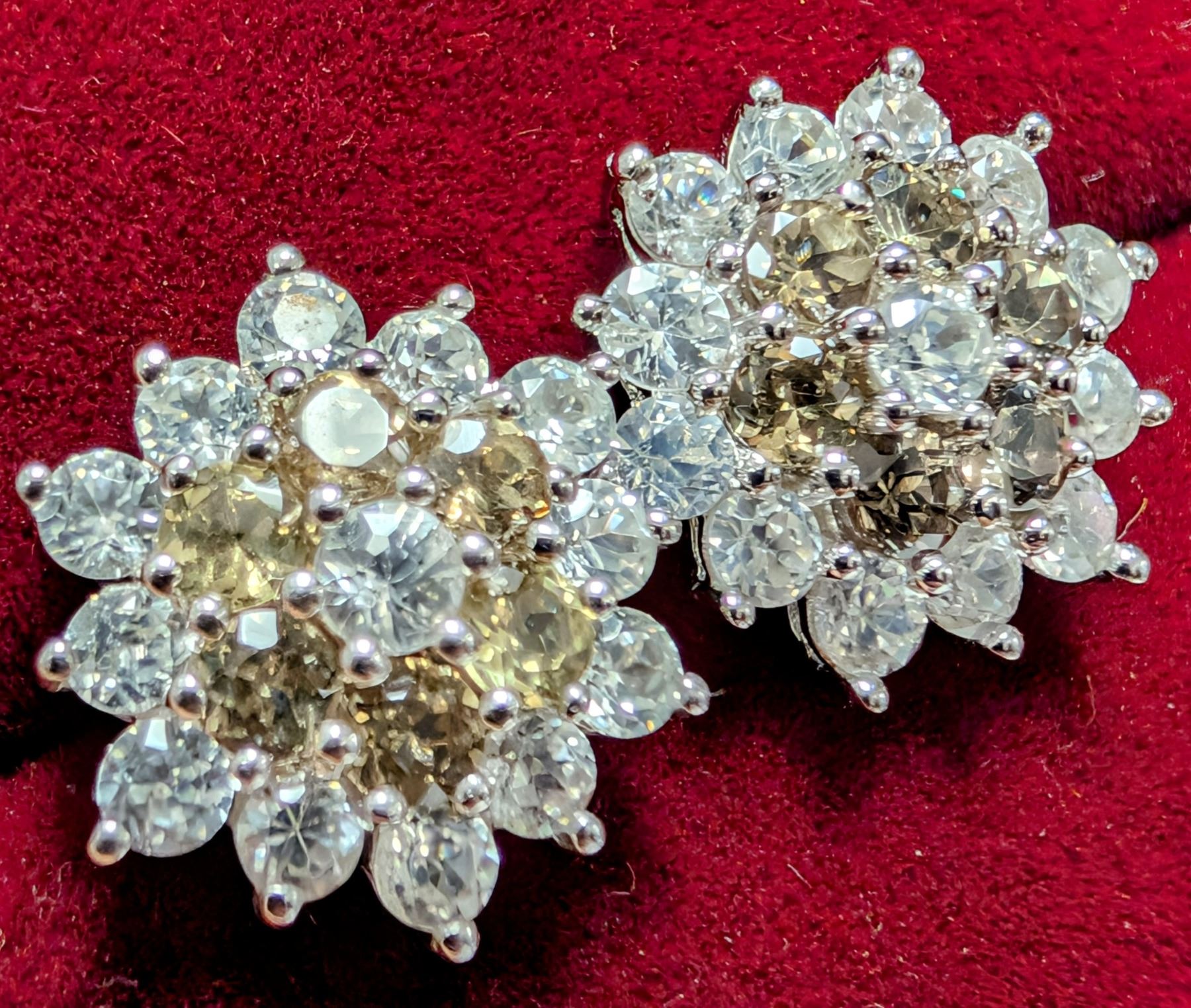 SILVER(4.8G), SMOKEY QUARTZ AND CZ EARRINGS