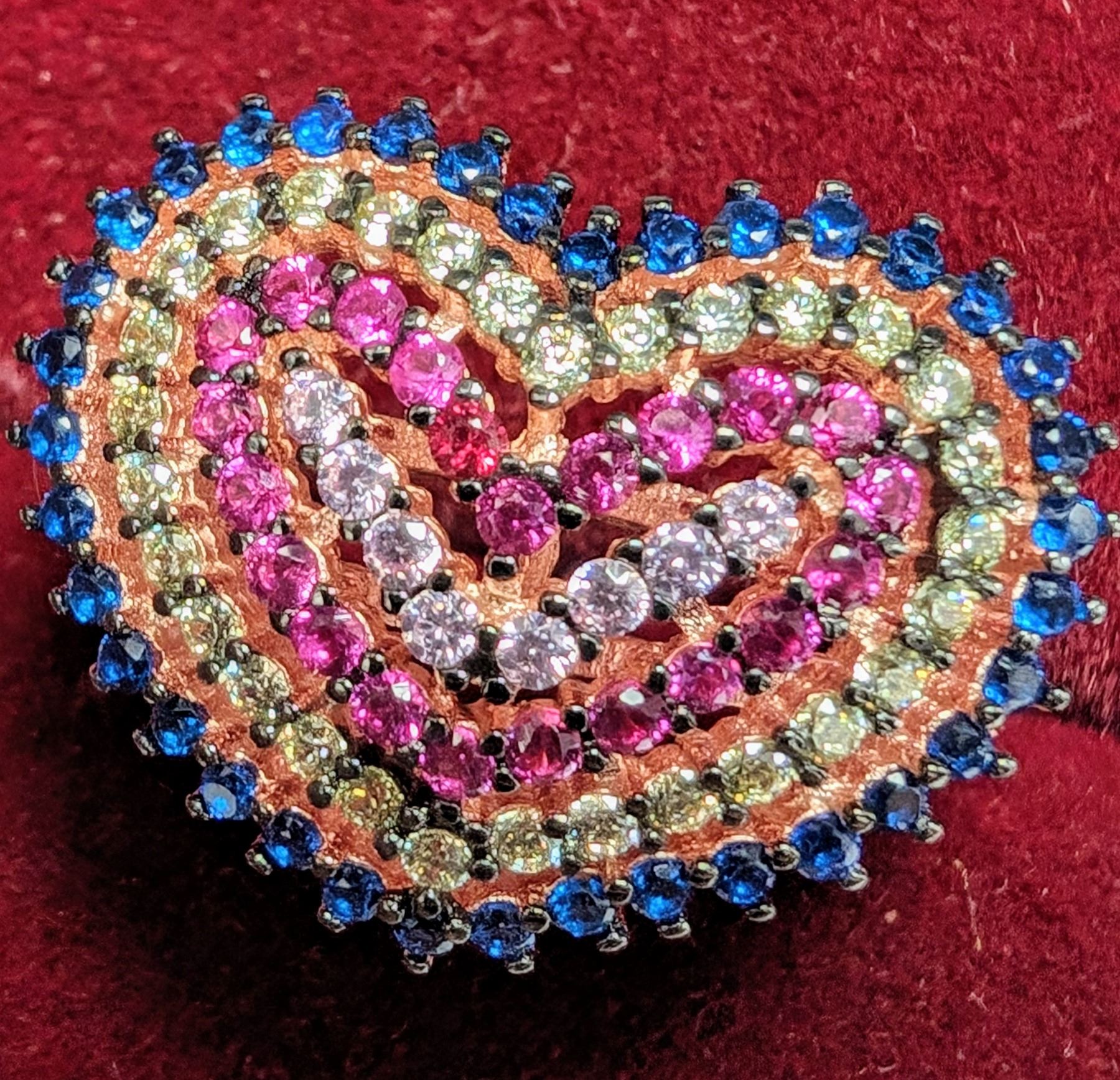 SILVER 4G BEAUTIFUL COLOR STONE RING (~SIZE 7)