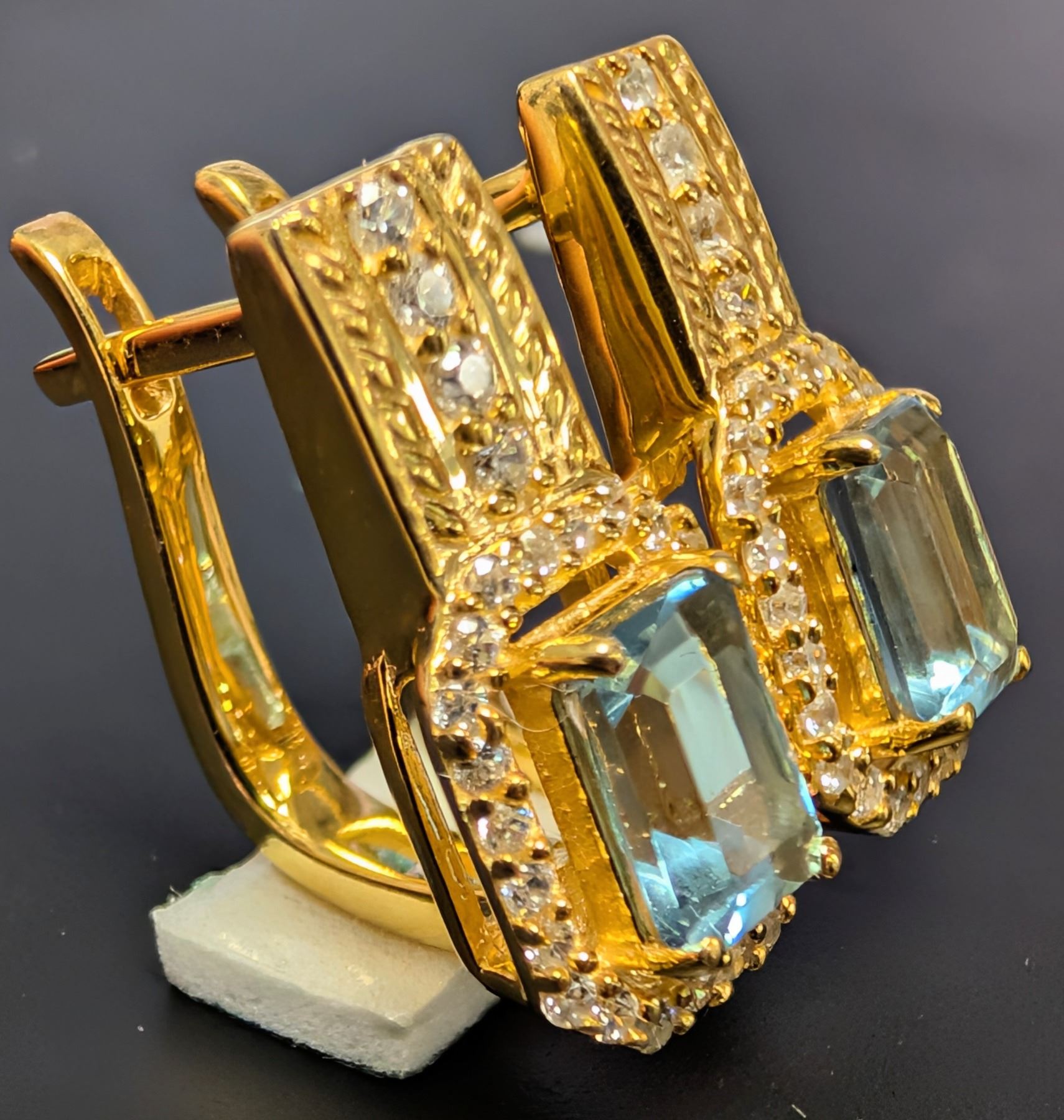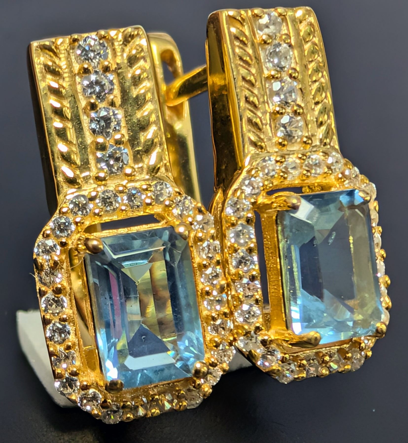SILVER(5.04G), BLUE TOPAZ (3CT) EARRING, SUGGESTED RETAIL VALUE $400