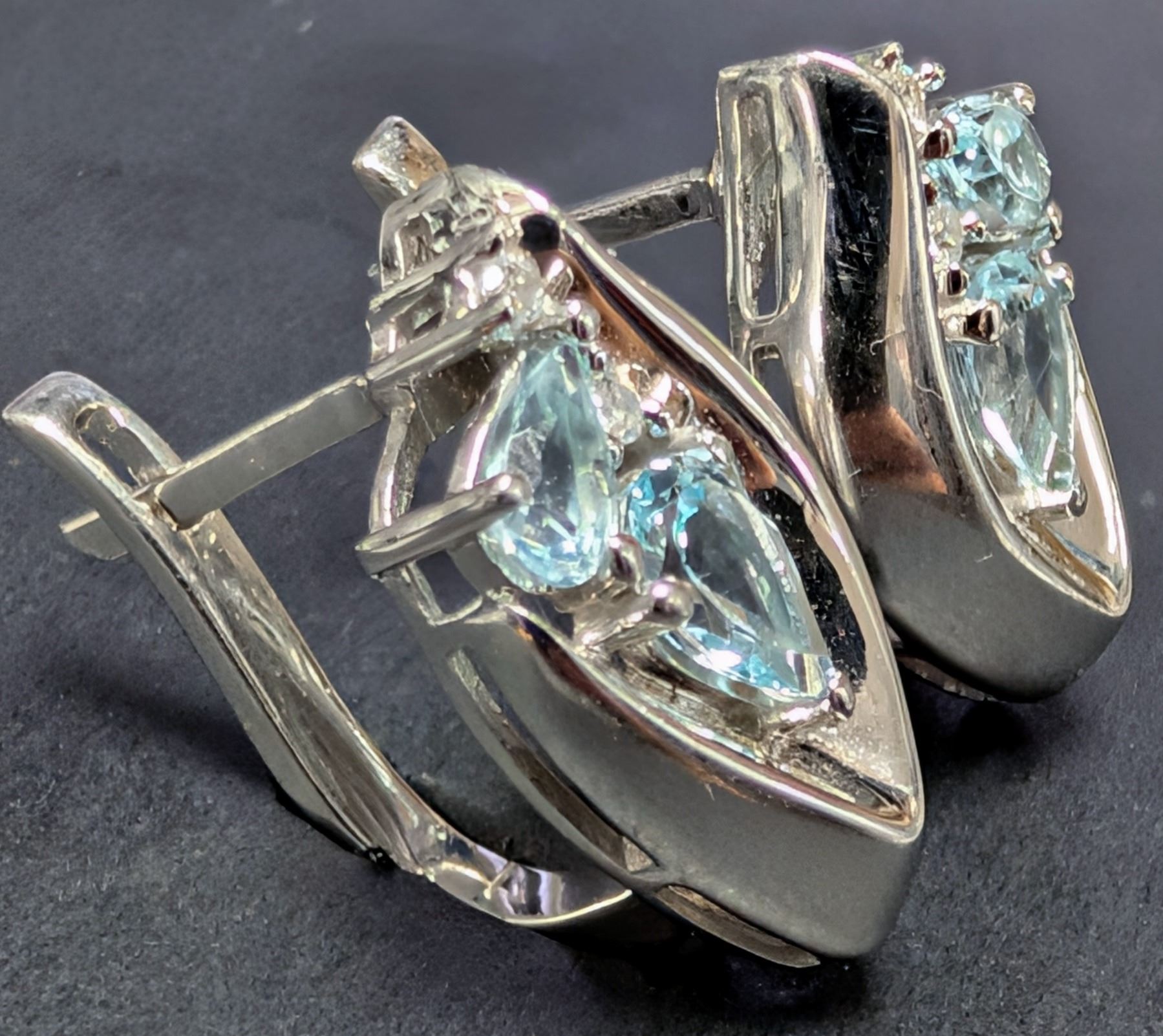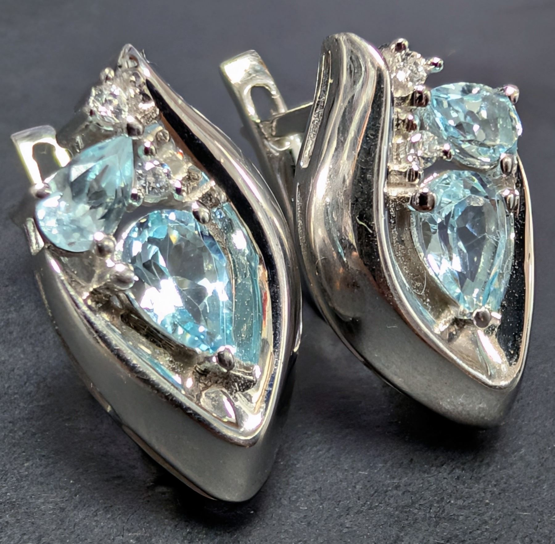 SILVER(5.42G), BLUE TOPAZ (1.2CT)EARRING, SUGGESTED RETAIL VALUE $440