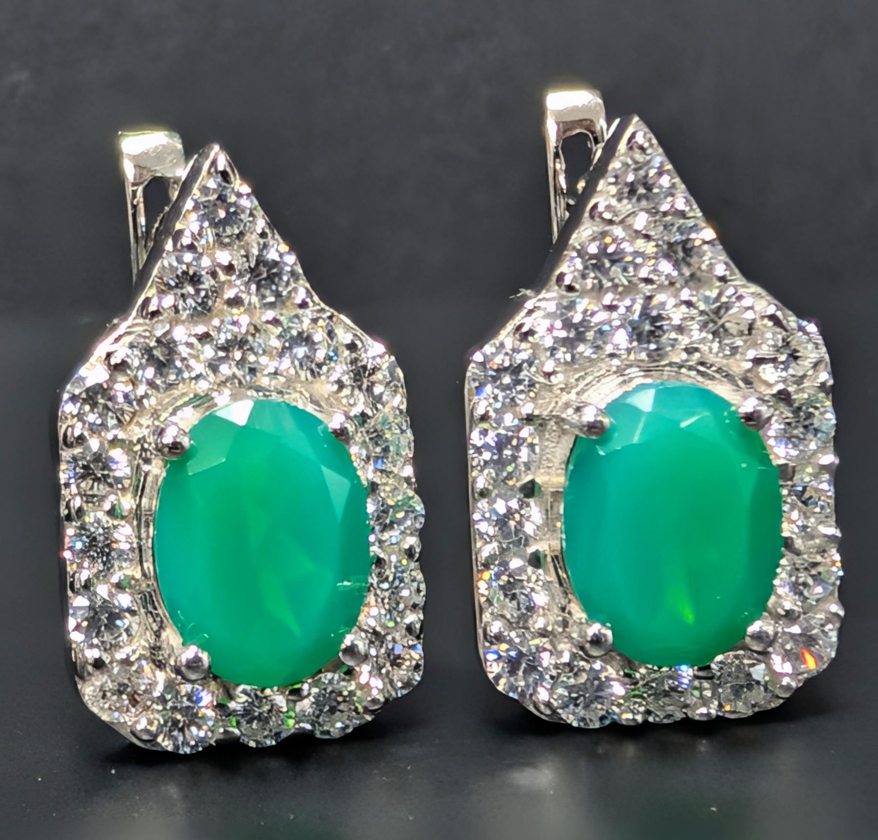 SILVER(5.74G), GREEN ONYX (2CT) EARRING, SUGGESTED RETAIL VALUE $440
