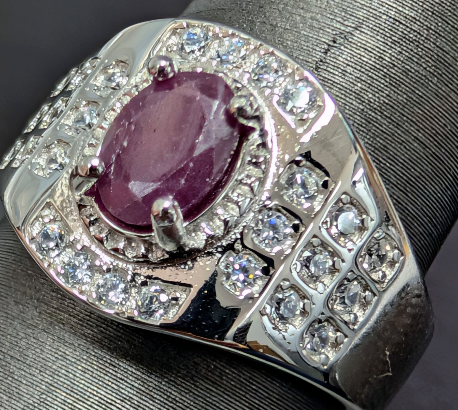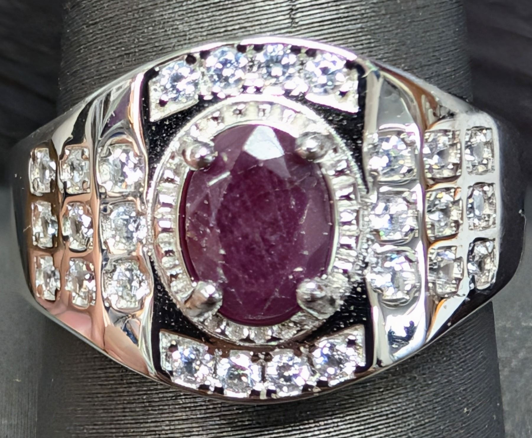 SILVER(6.08G), RUBY (1CT) RING, SUGGESTED RETAIL VALUE $500