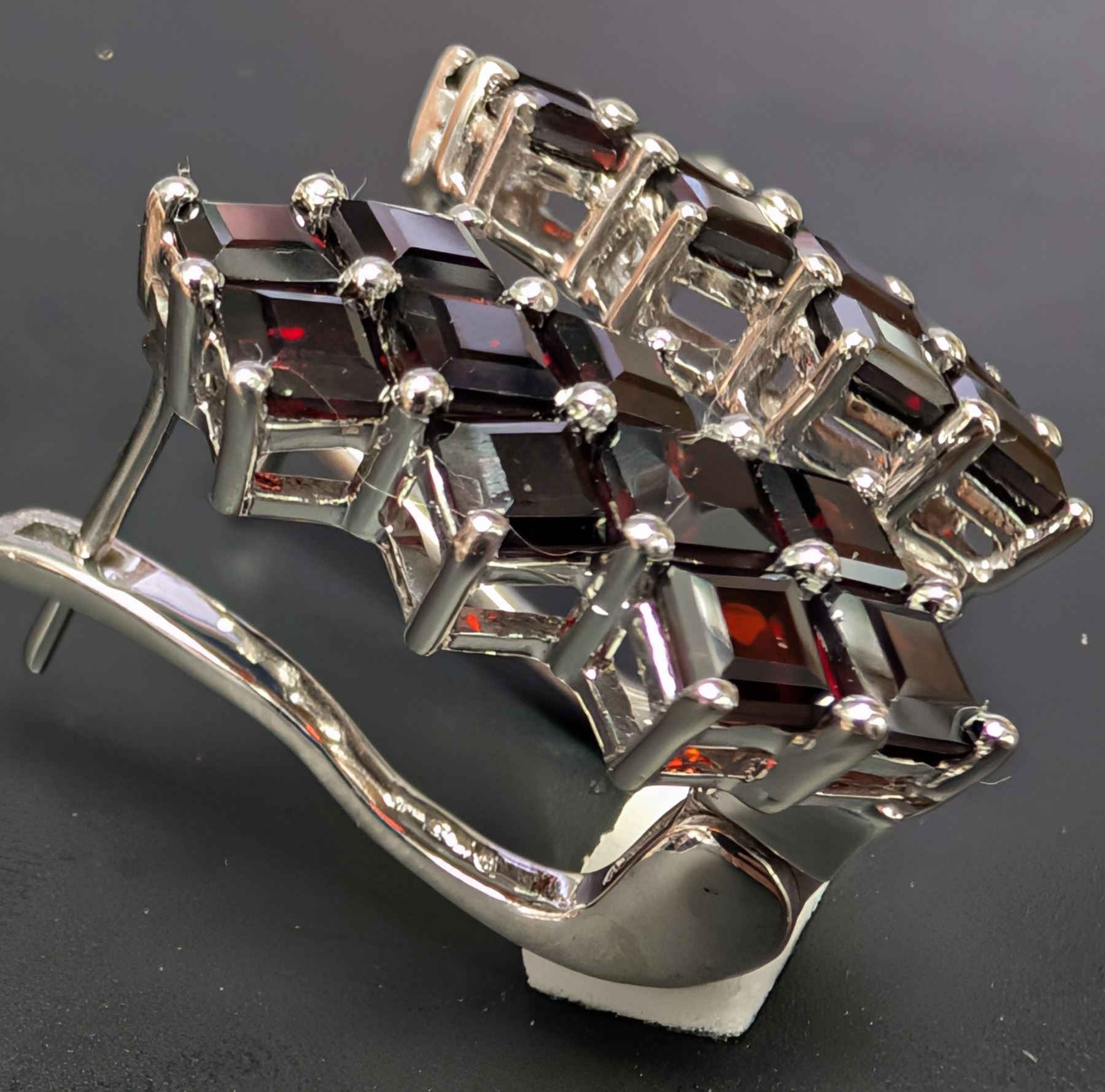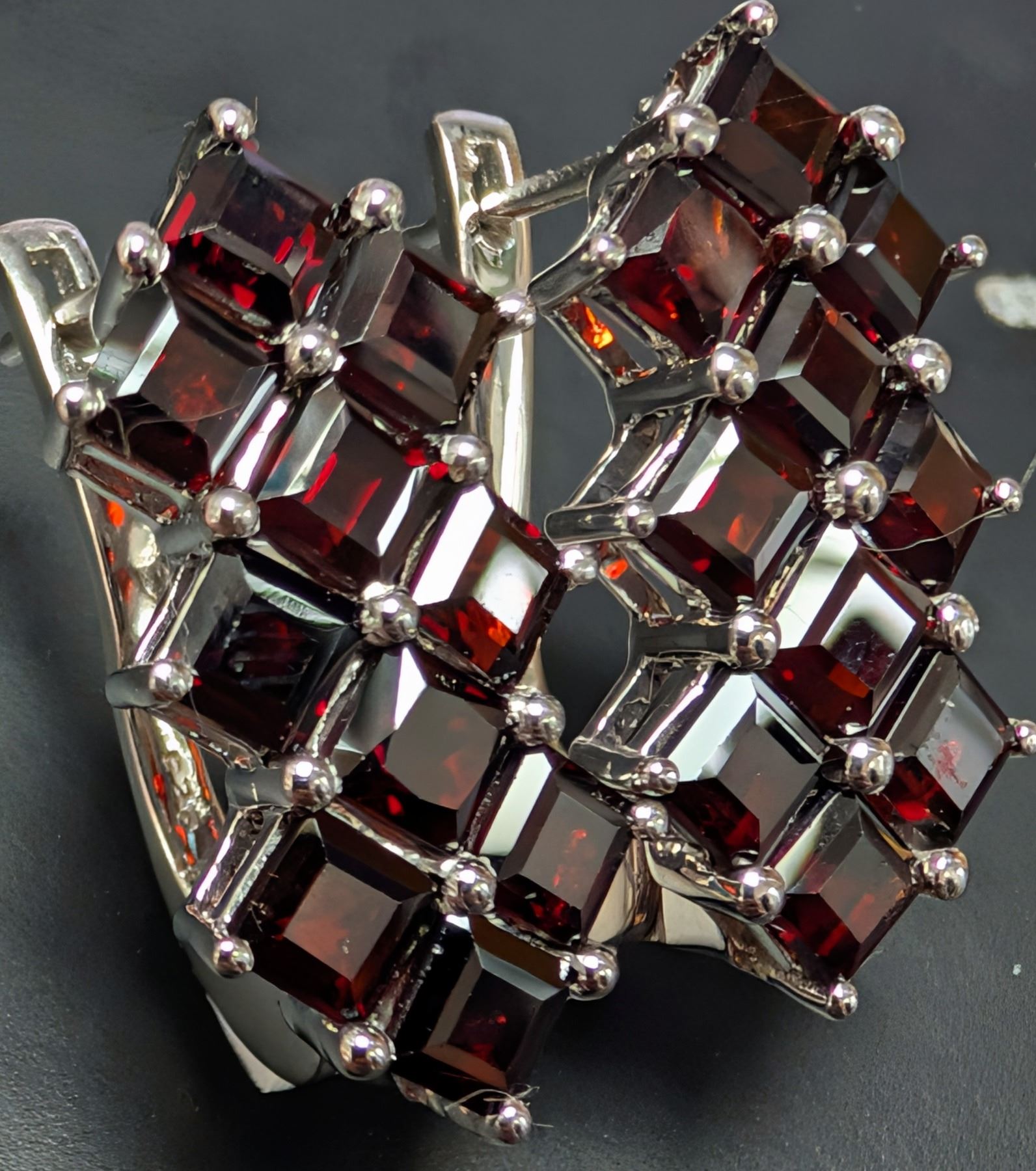 SILVER(9.15G), GARNET (4CT) EARRING, SUGGESTED RETAIL VALUE $500