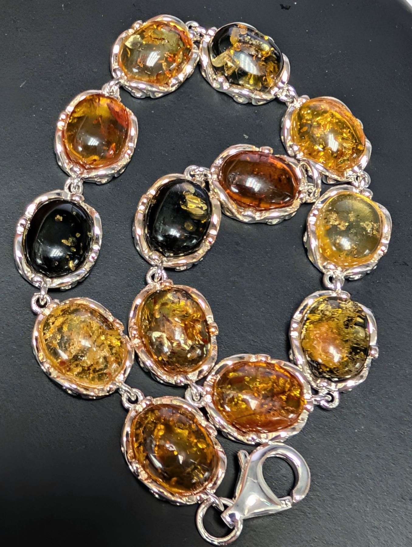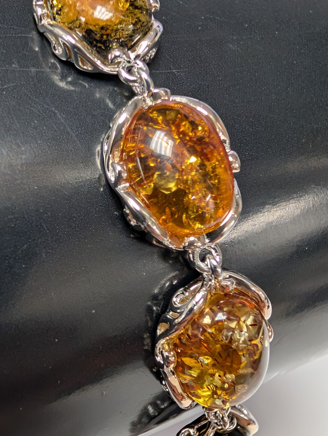 SILVER(9.5G), GENUINE AMBER BRACELET 7", SUGGESTED RETAIL VALUE $300
