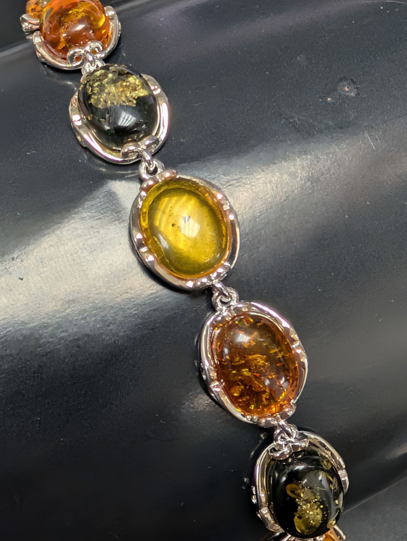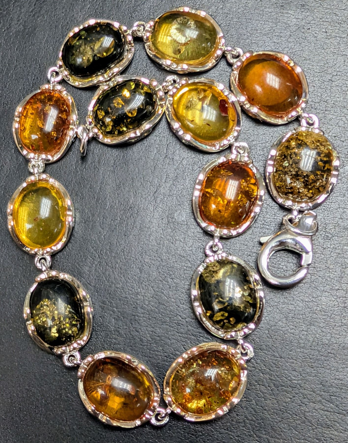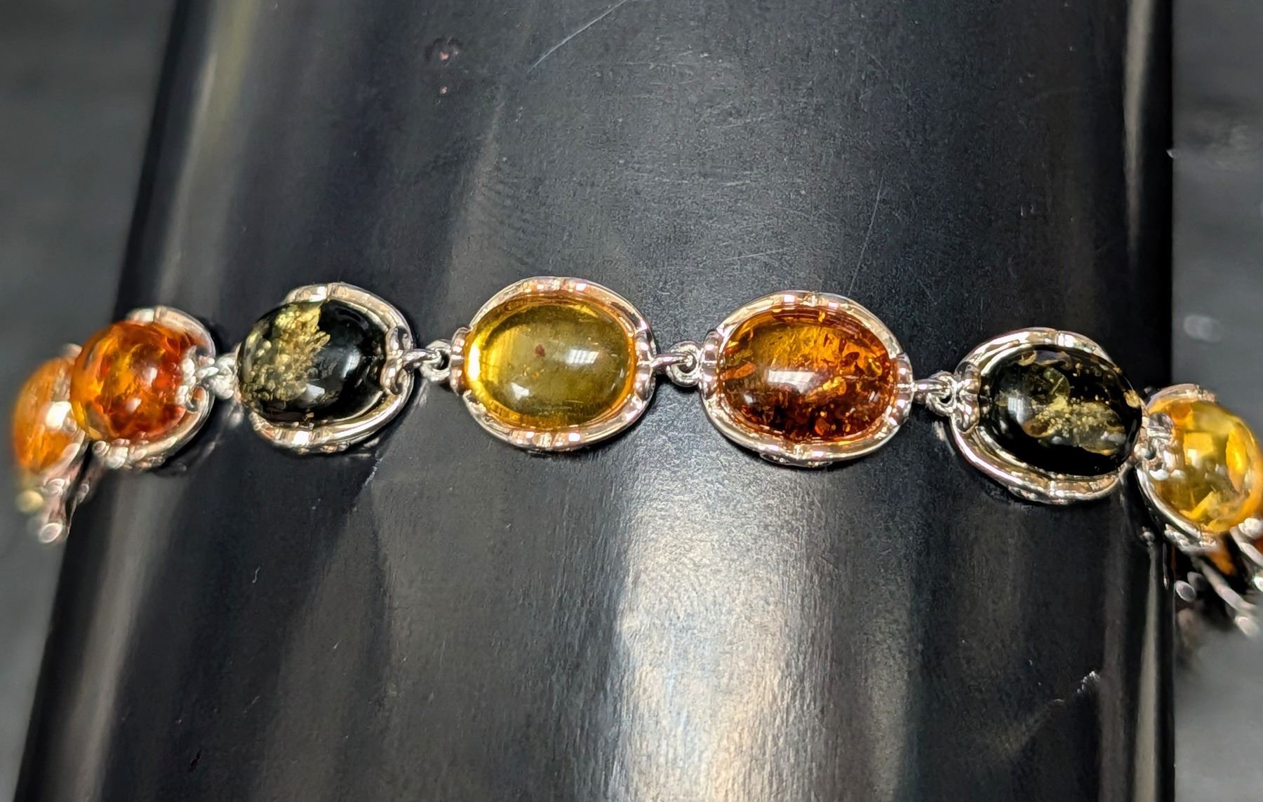 SILVER(9.8G), AMBER (APP 15CT) BRACELET 7", SUGGESTED RETAIL VALUE $600