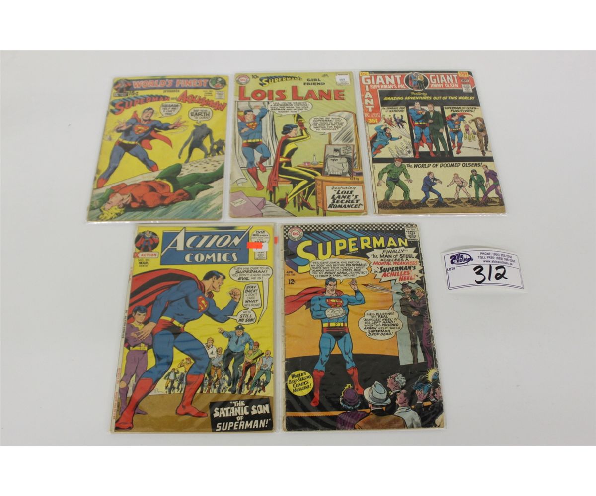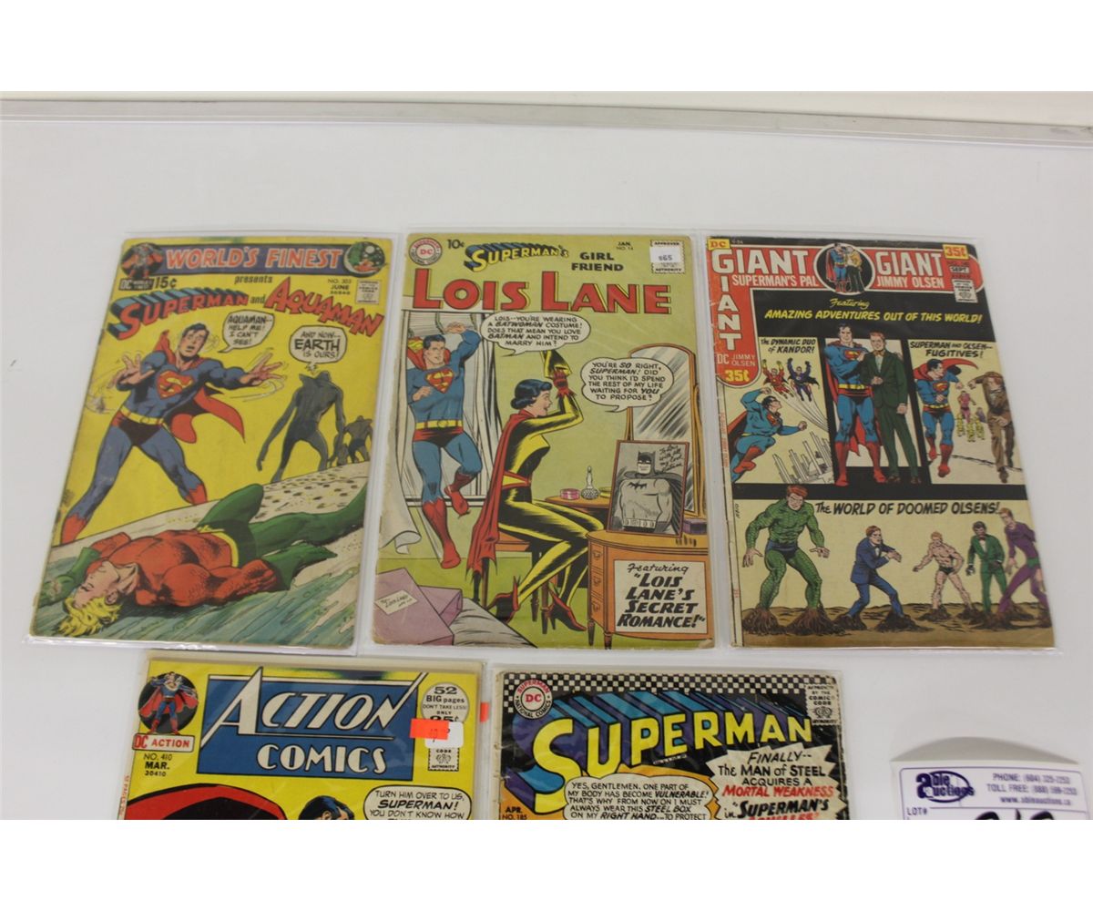 SILVER AGE SUPERMAN LOT - 5 COMICS G- TO FN- WORLDS FINEST 203 G-, SUPERMANS GIRLFRIEND LOIS LANE 14 G, SUPERMANS PAL JIMMY OLSEN 140 G, ACTION COMICS 410 FN-, SUPERMAN 185 G-