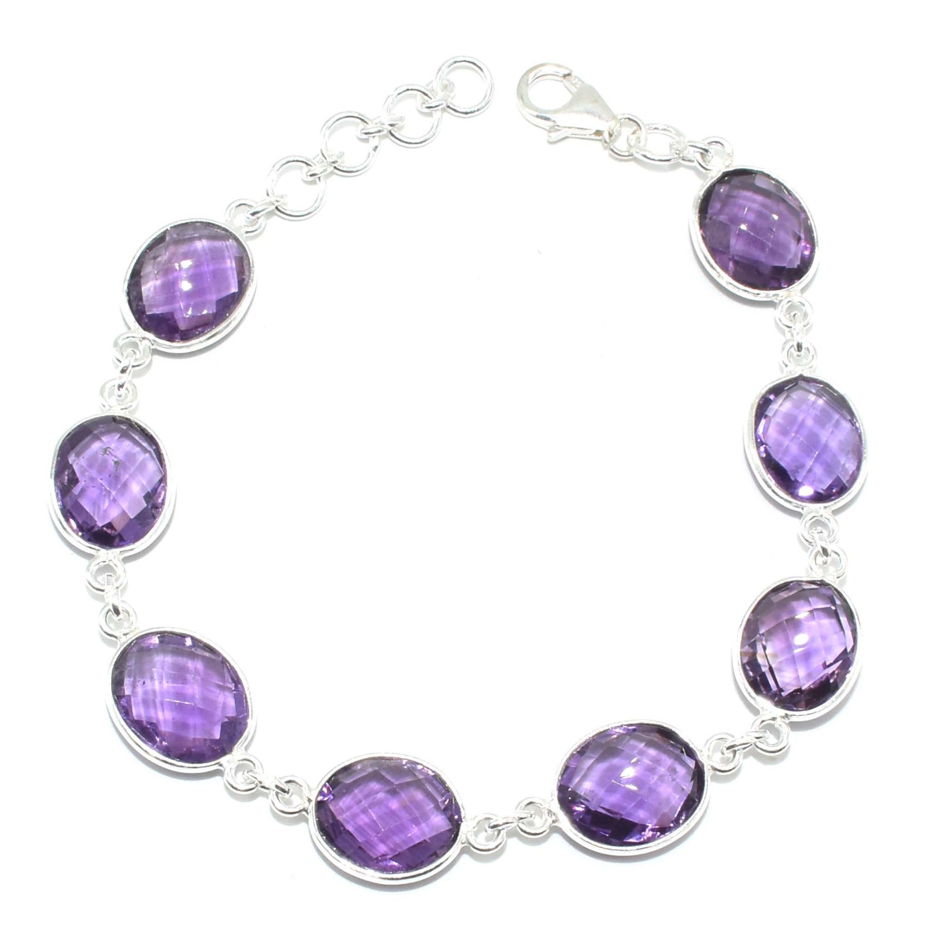SILVER AMETHYST(15.3CT) HAND MADE BRACELET (~LENGTH 7.5INCHES) (~WEIGHT 10.65G)