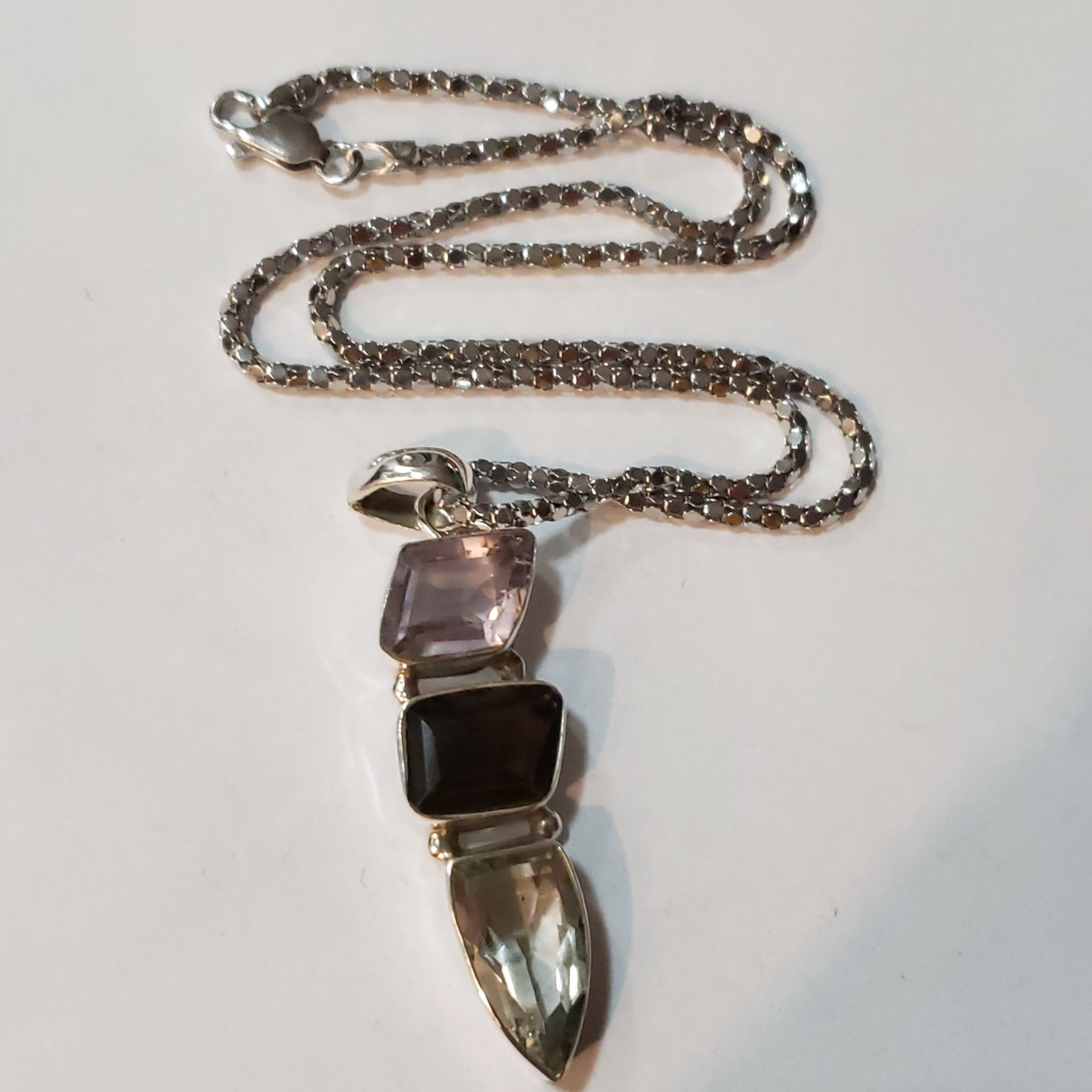 SILVER AMETHYST SMOKEY QUARTZ NECKLACE (LENGTH 20INCHES) (WEIGHT 11.26G) TO $138)