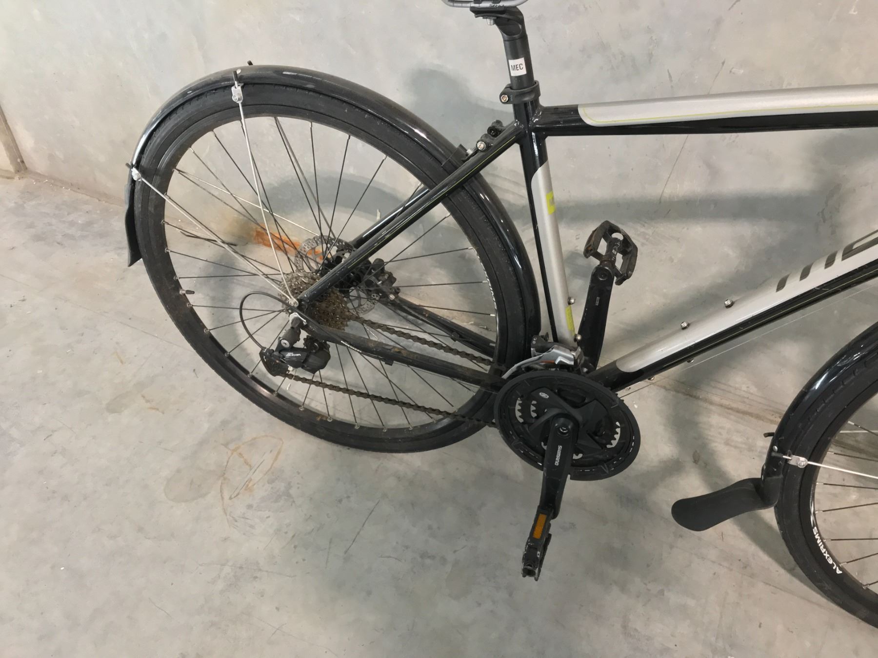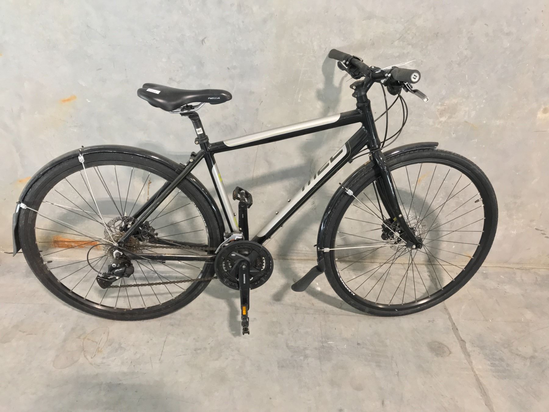 SILVER AND BLACK MEC 24 SPEED, 18" FRAME, DISC BRAKES ROAD BIKE