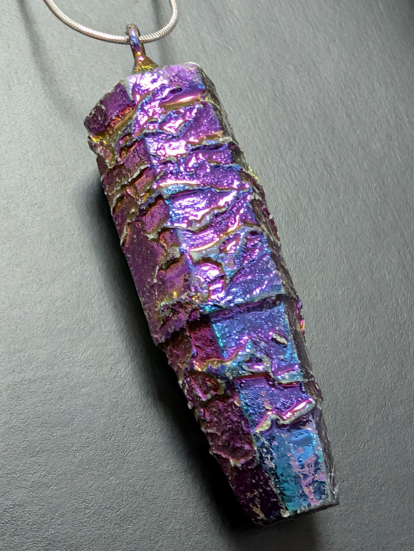 SILVER(APP 13G), RAINBOW TITANIUM AURA QUARTZ NECKLACE 18", SUGGESTED RETAIL VALUE $200
