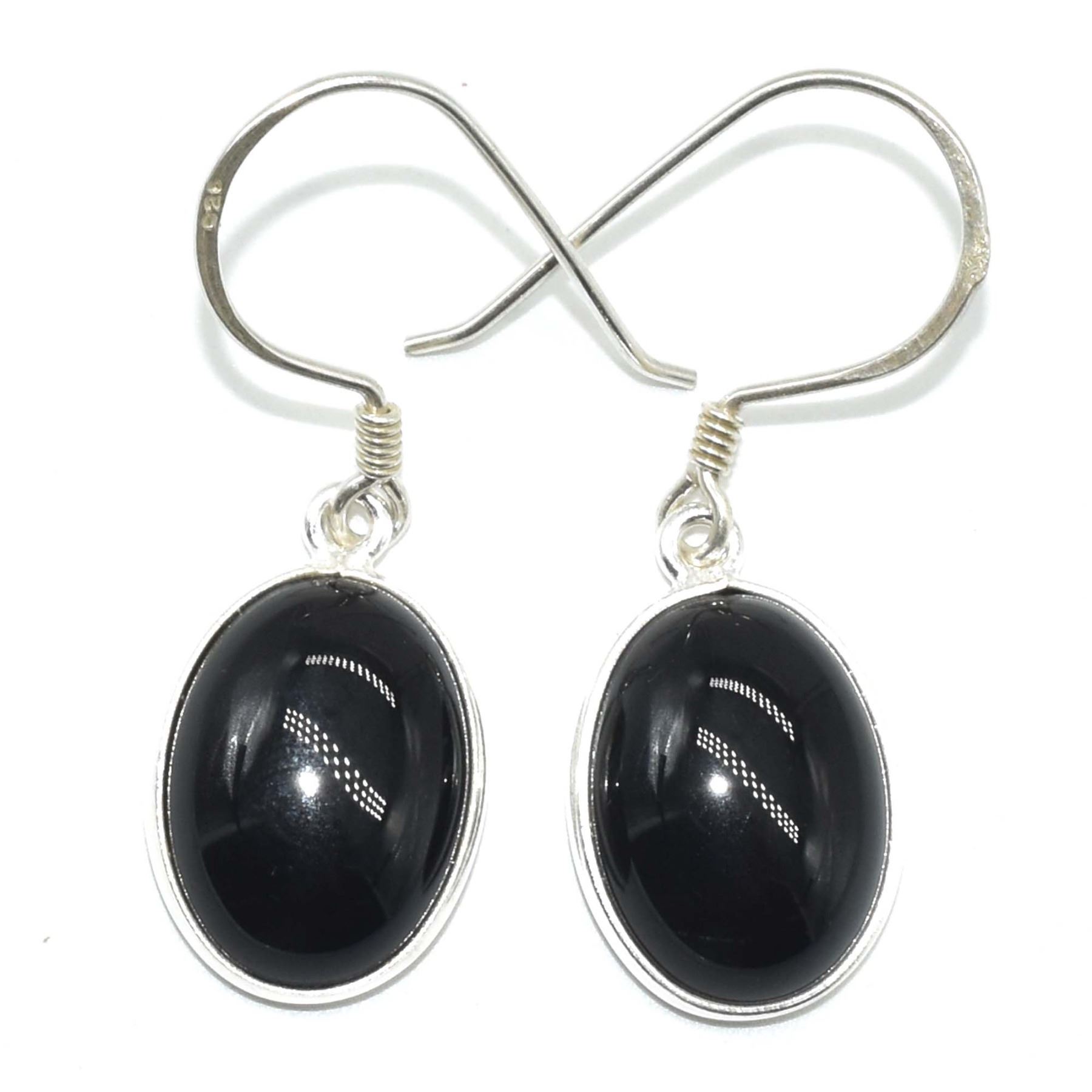 SILVER BLACK ONYX(11.7CT) HAND MADE EARRINGS (~WEIGHT 4.6G)
