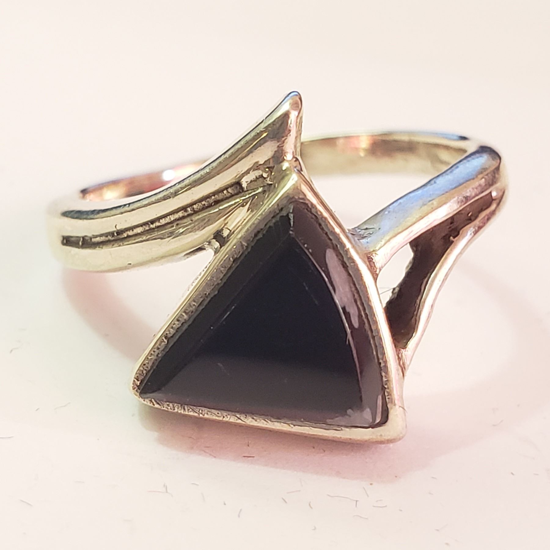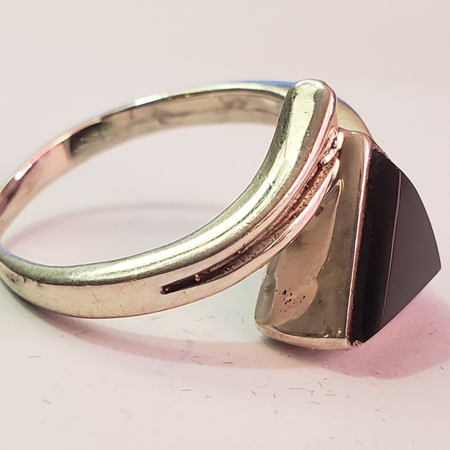 SILVER BLACK ONYX RING (SIZE 7.5) (WEIGHT 4.28G)