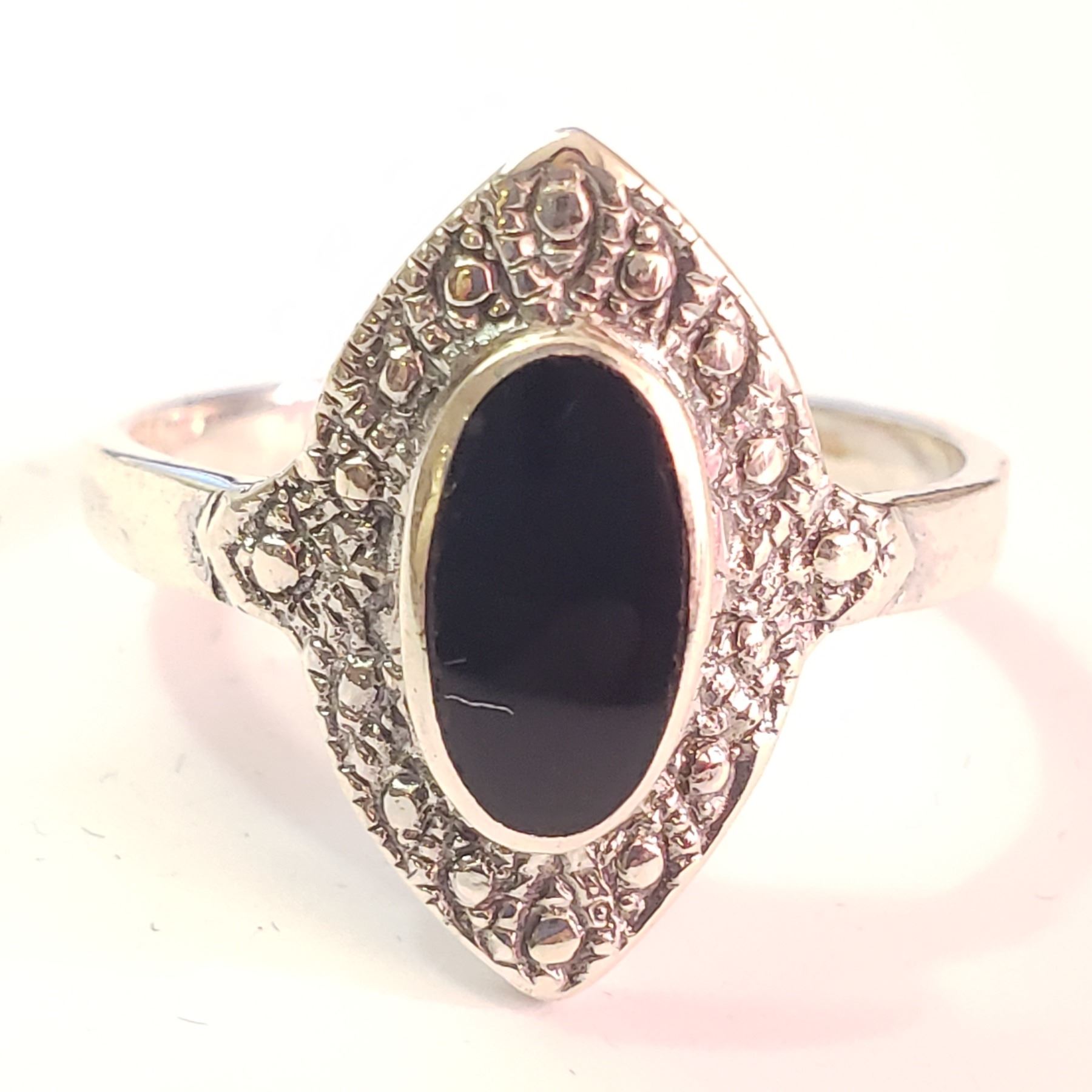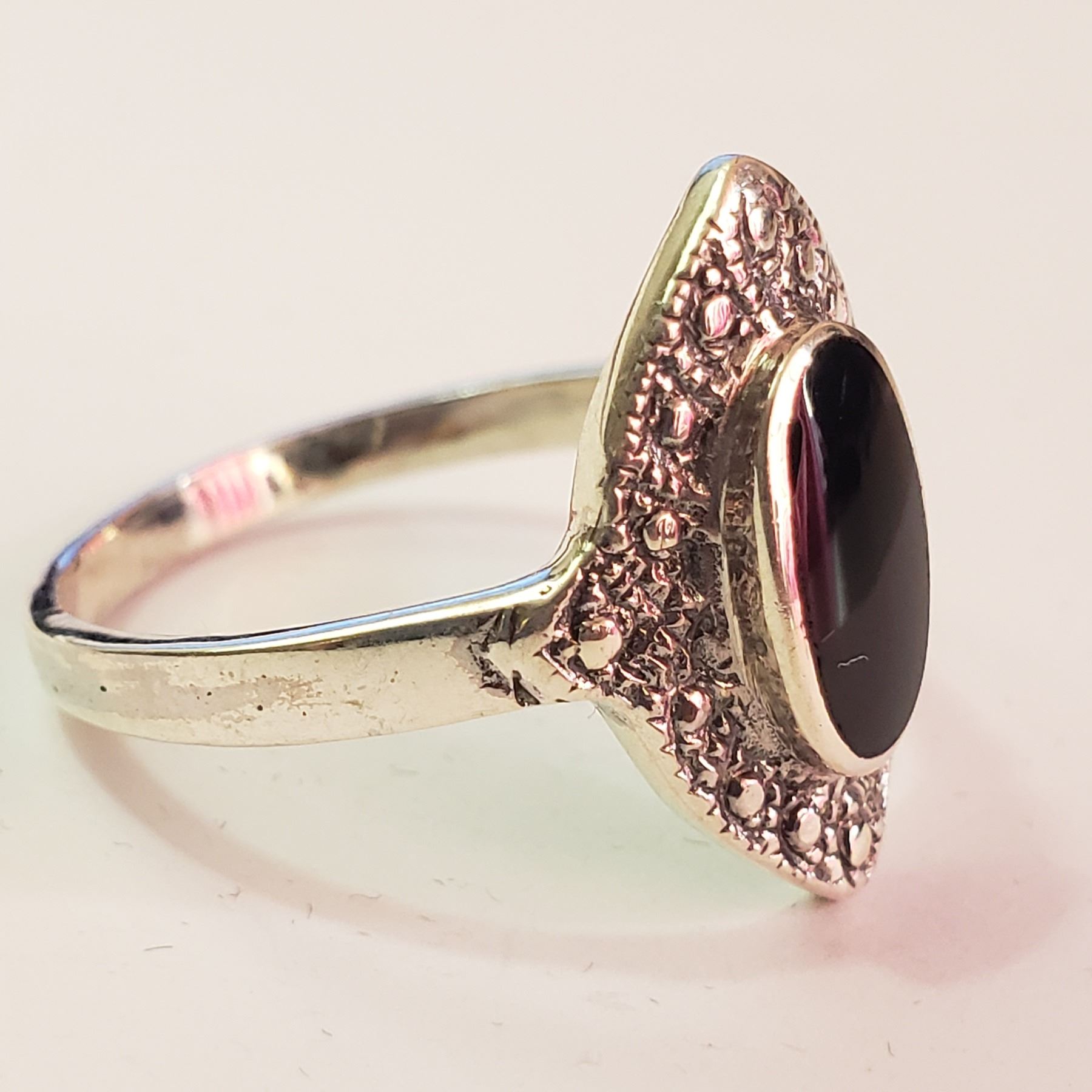 SILVER BLACK ONYX RING (SIZE 9.5) (WEIGHT 3.19G)