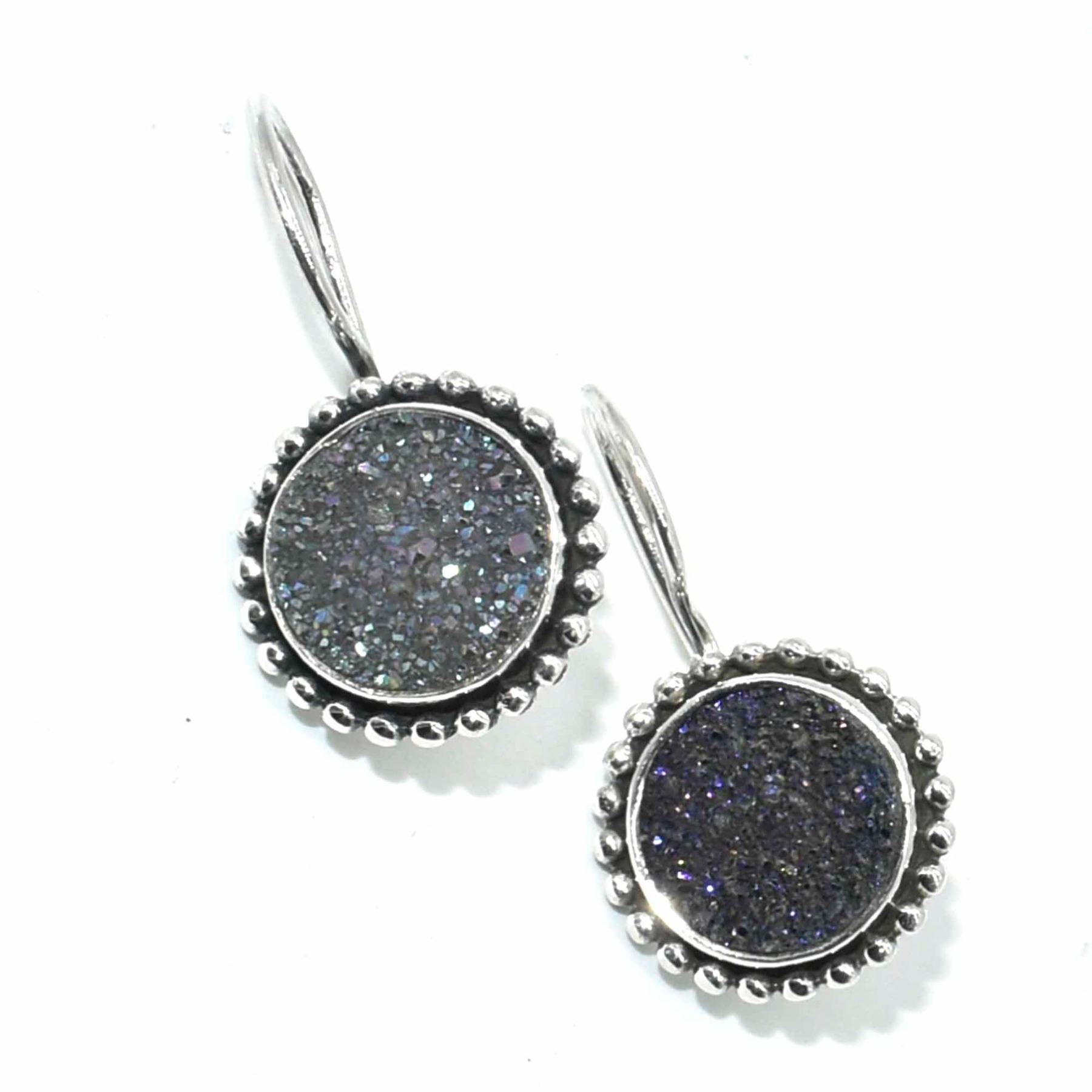 SILVER BLUE DRUZY(4.85CT) HAND MADE EARRINGS (~WEIGHT 4.25G)