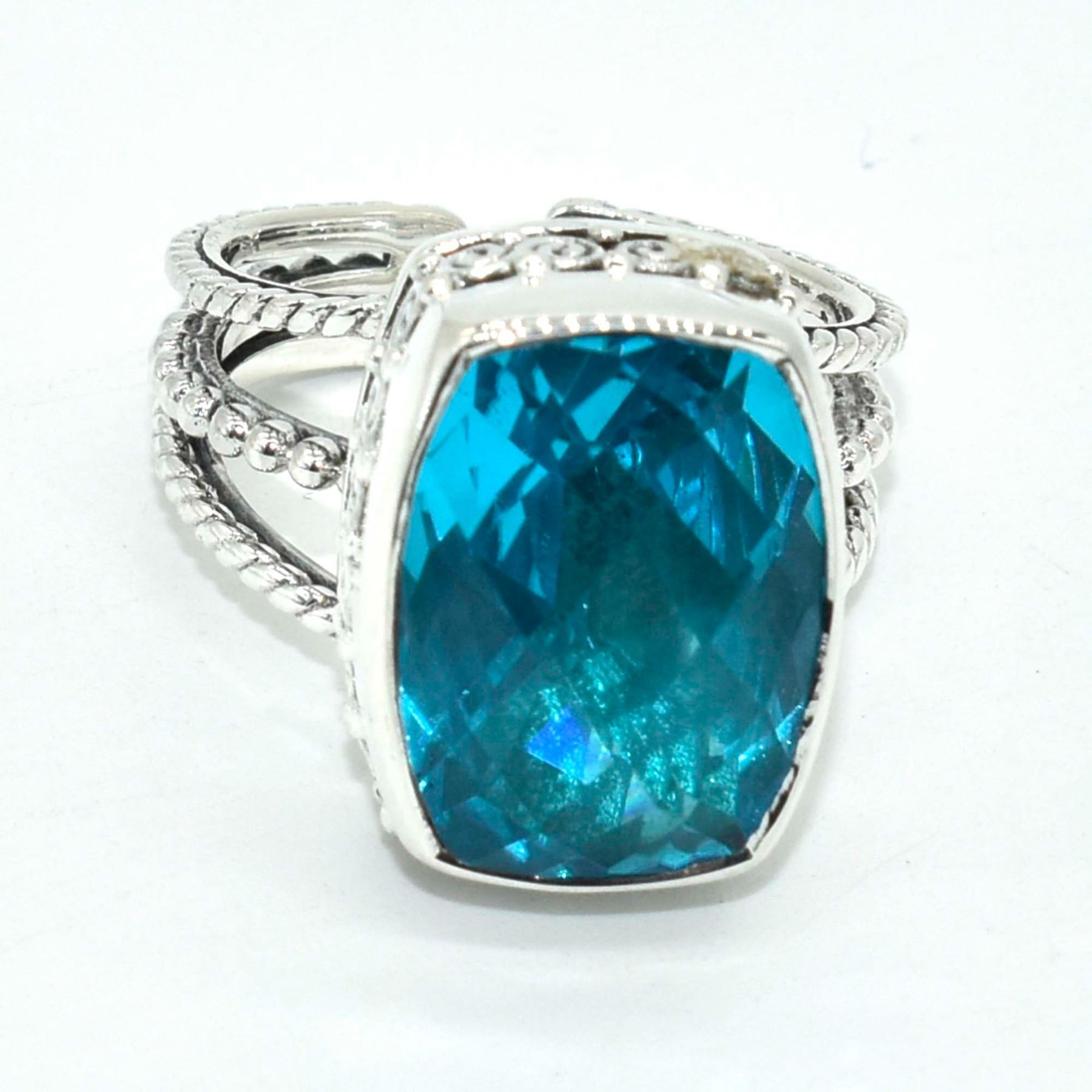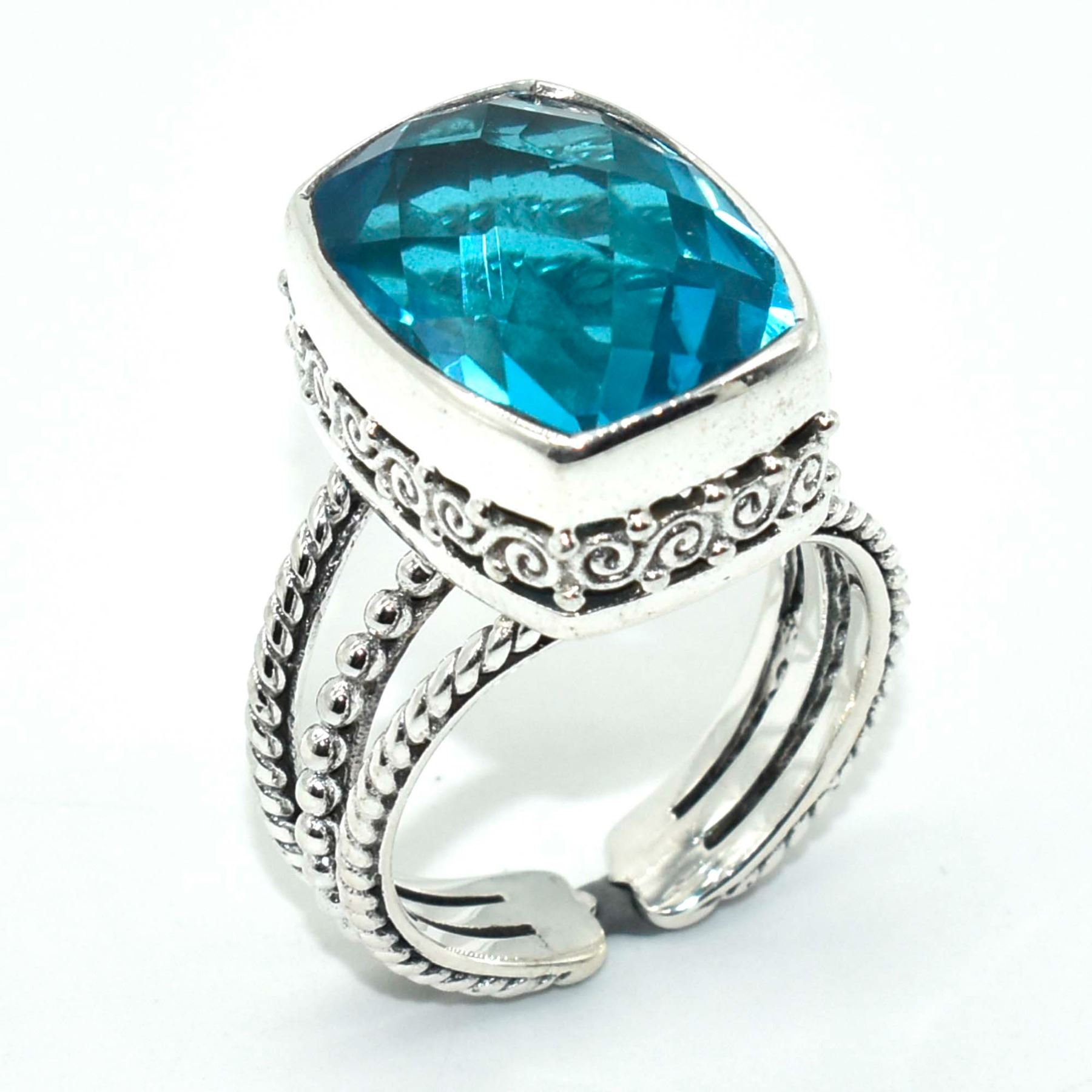 SILVER BLUE QUARTZ(9.2CT) HAND MADE ADJUSTABLE RING (~SIZE 7) (~WEIGHT 9.6G)