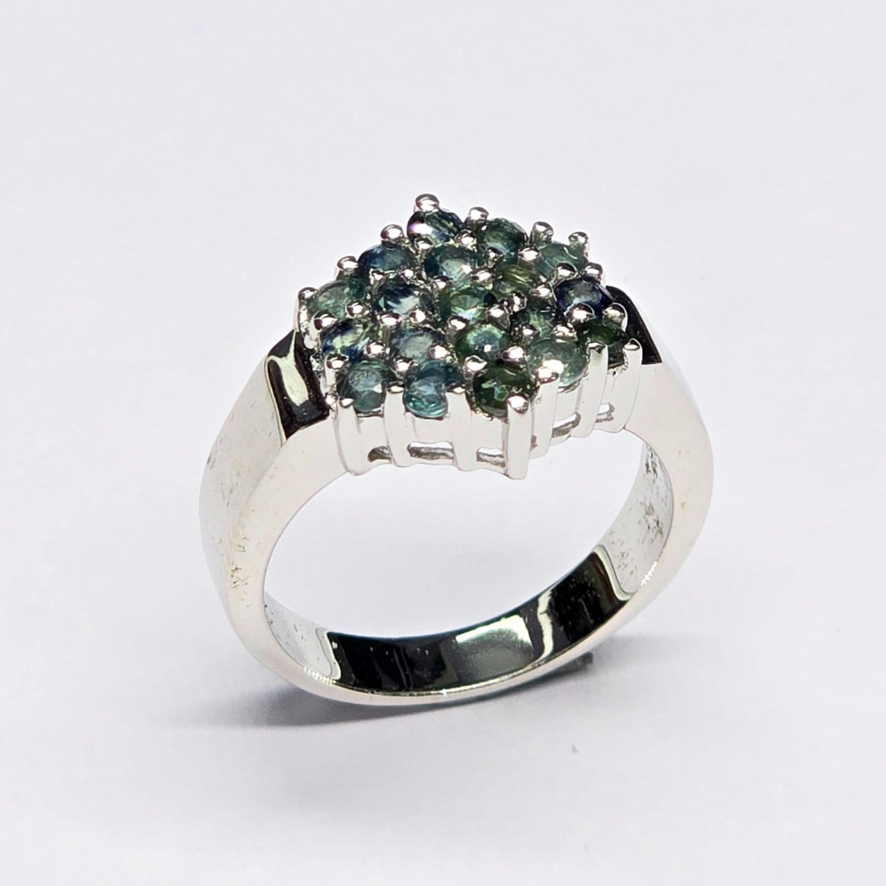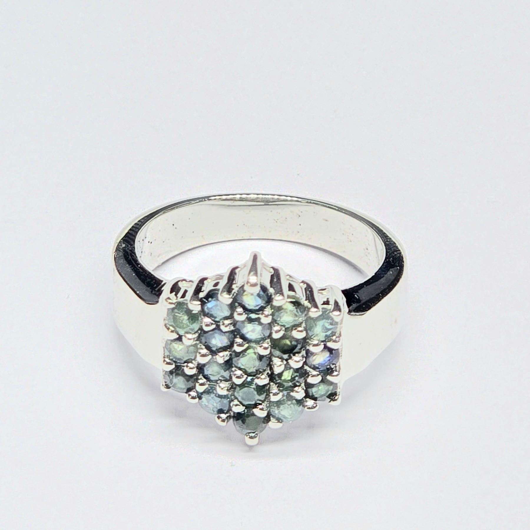 SILVER BLUE SAPPHIRE(2.9CT) RHODIUM PLATED RING (~SIZE 7) (~WEIGHT 5.84G)