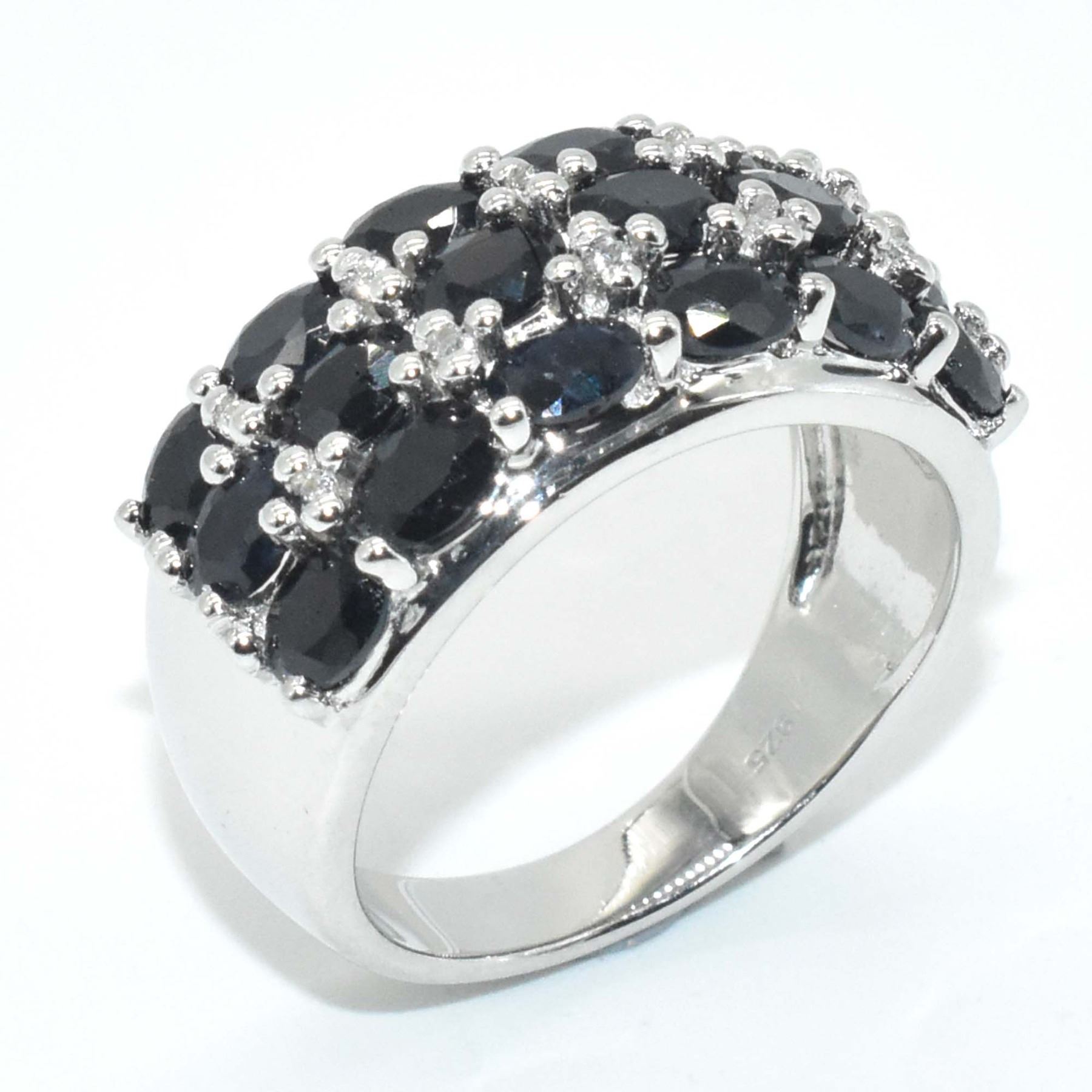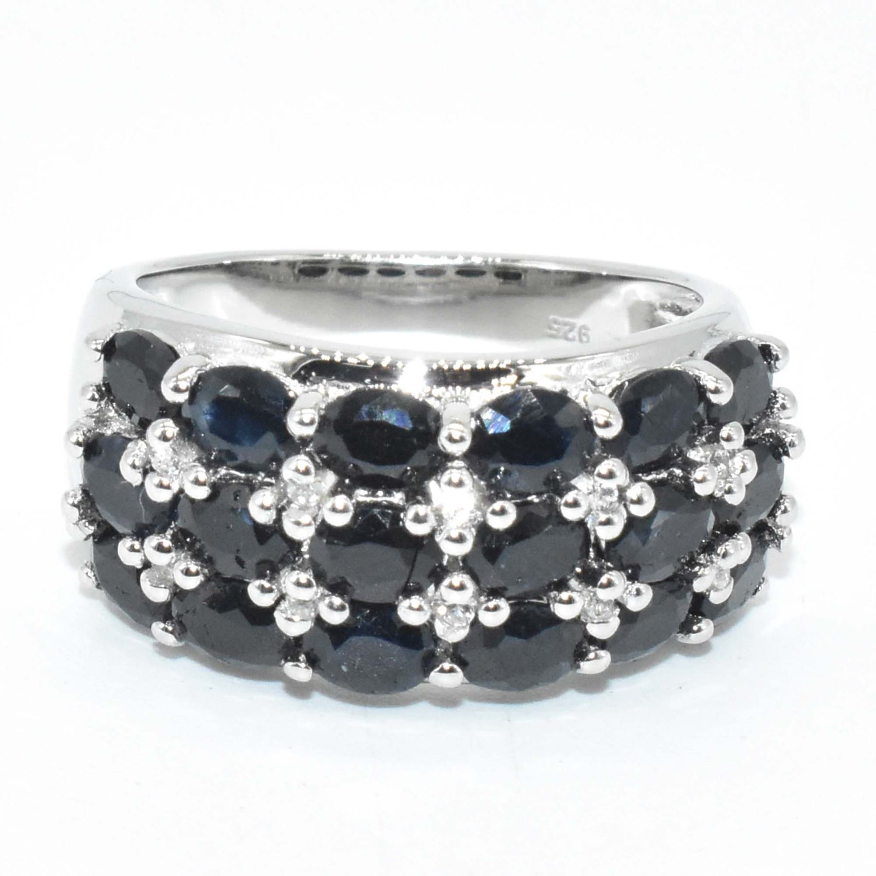 SILVER BLUE SAPPHIRE(3.75CT) RHODIUM PLATED RING (~SIZE 7) (~WEIGHT 5.5G)