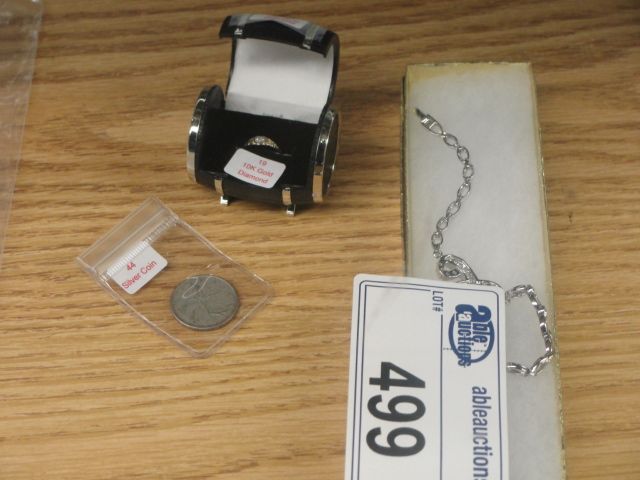 SILVER BRACELET, GOLD RING AND SILVER COLLECTORS QUARTER
