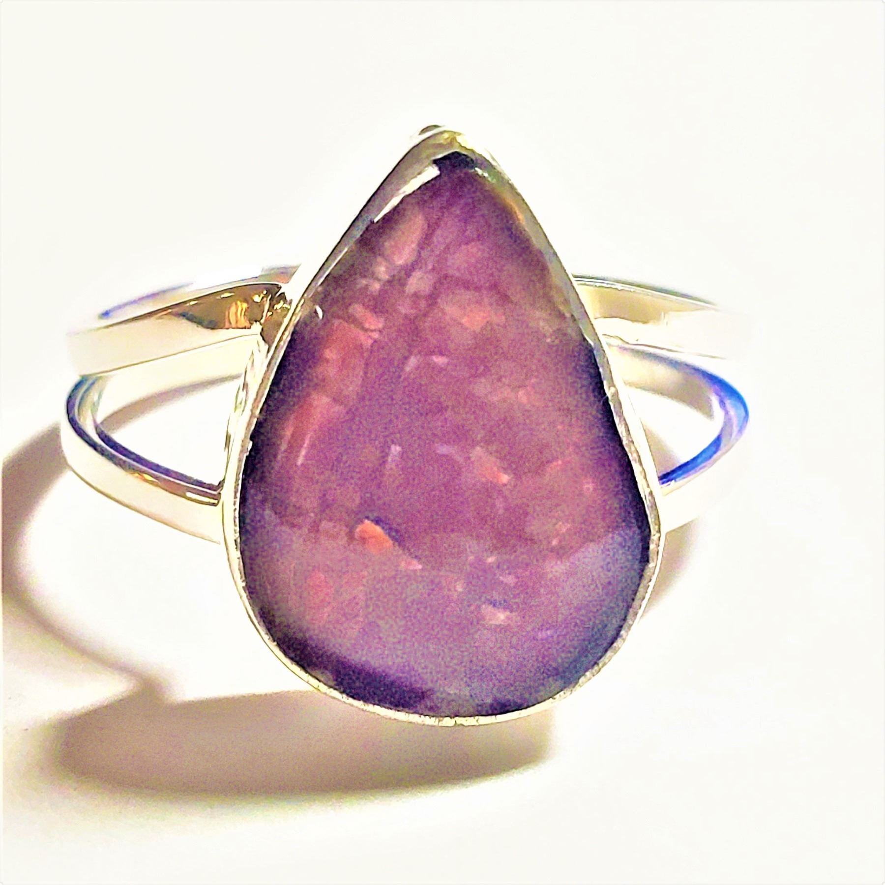 SILVER CANADIAN AMMOLITE RING (SIZE 9) (WEIGHT 3.15G)