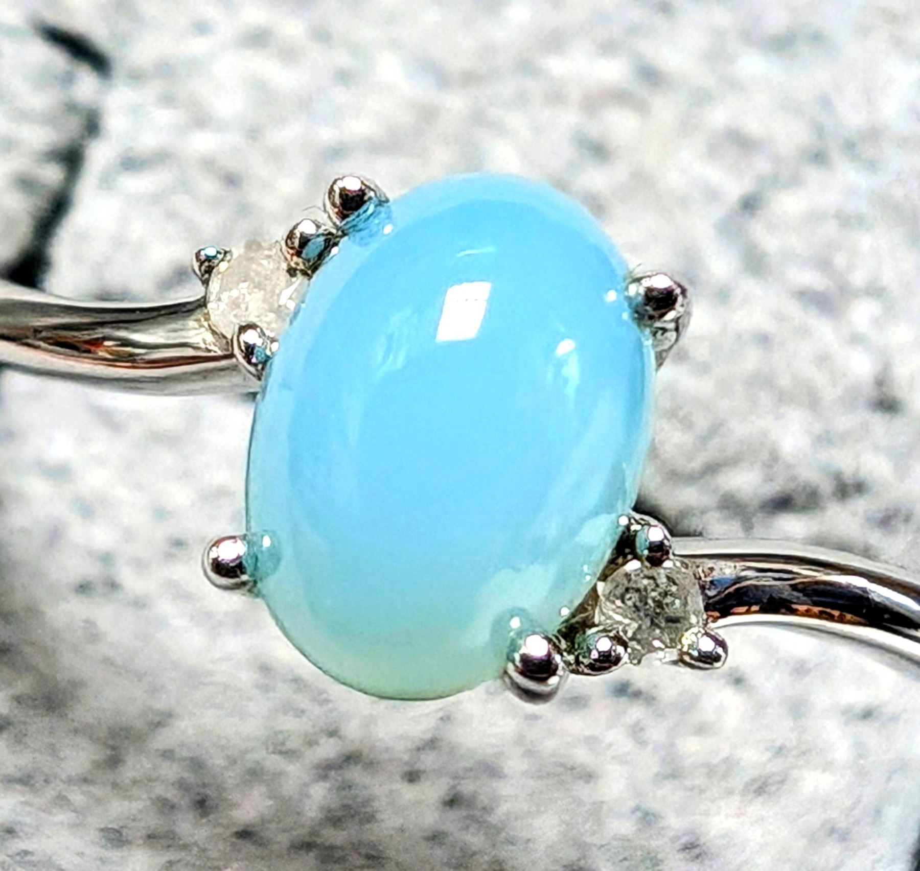 SILVER CHALCEDONY AND DIAMOND 0.02CT RING