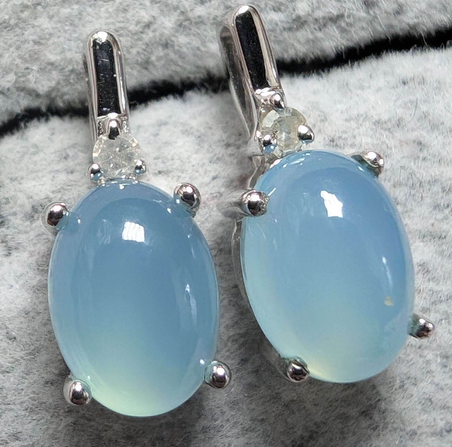 SILVER CHALCEDONY AND DIAMOND EARRINGS, SUGGESTED RETAIL VALUE $200