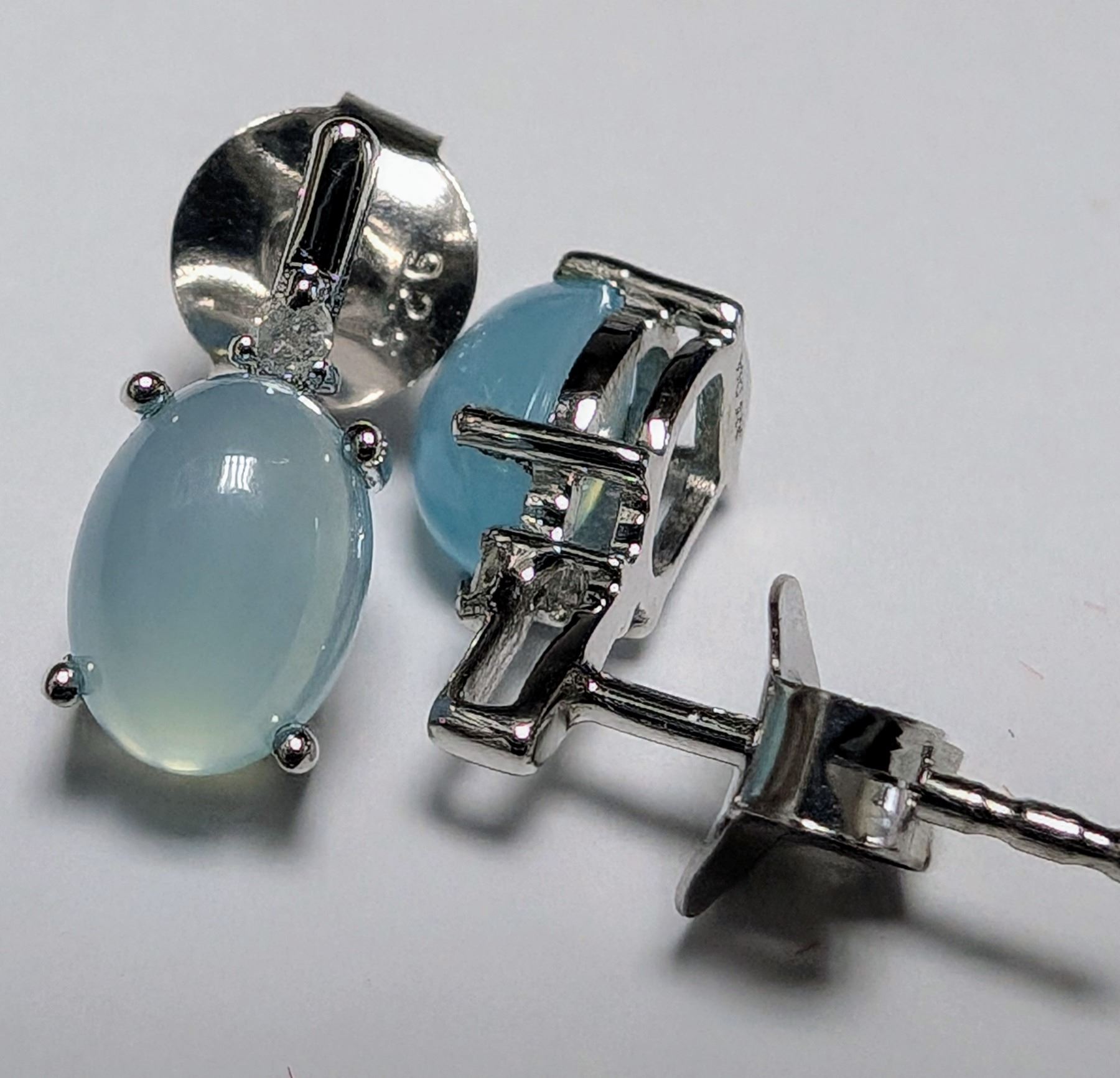 SILVER CHALCEDONY AND DIAMOND EARRINGS, SUGGESTED RETAIL VALUE $200
