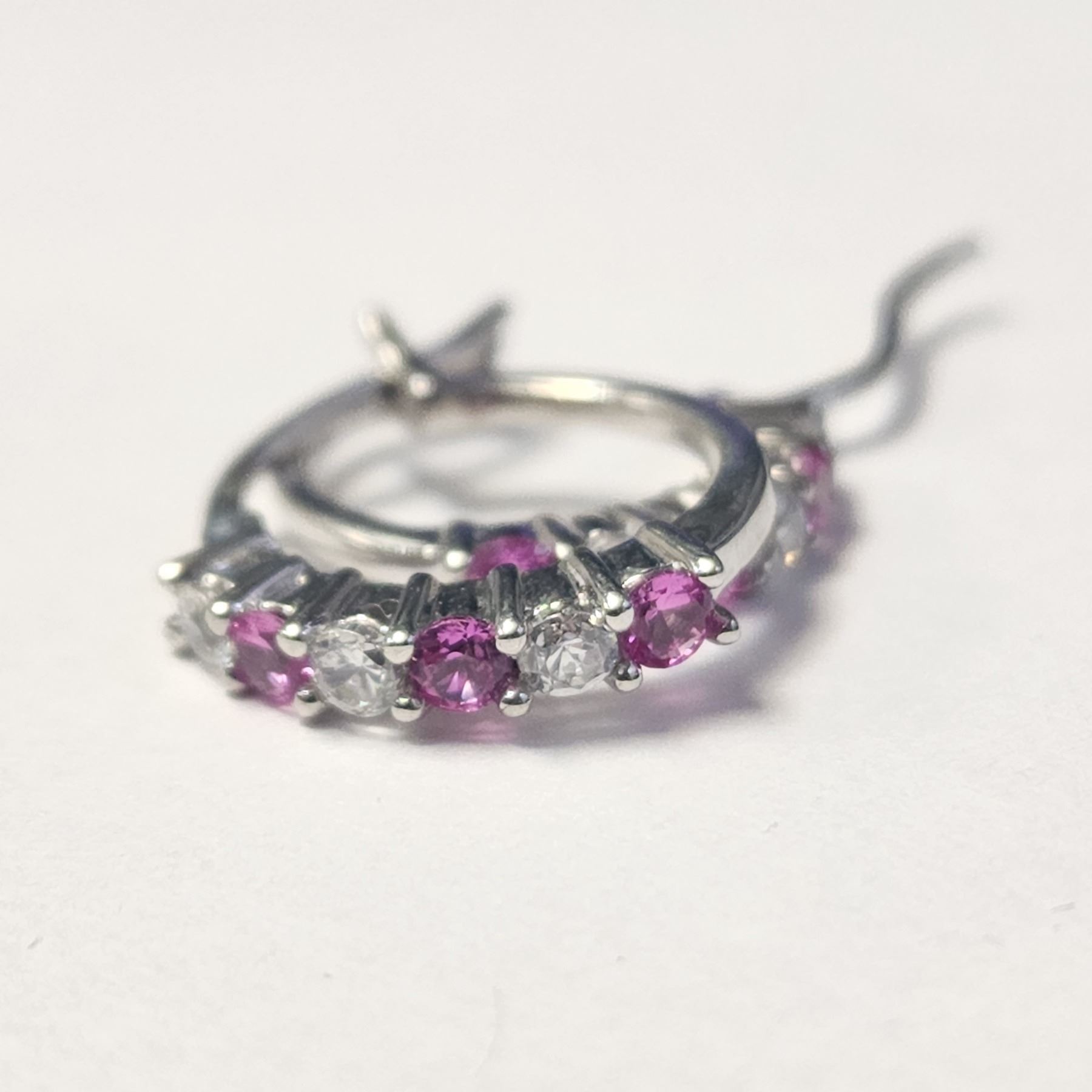 SILVER CREATED PINK SAPPHIRE EARRINGS