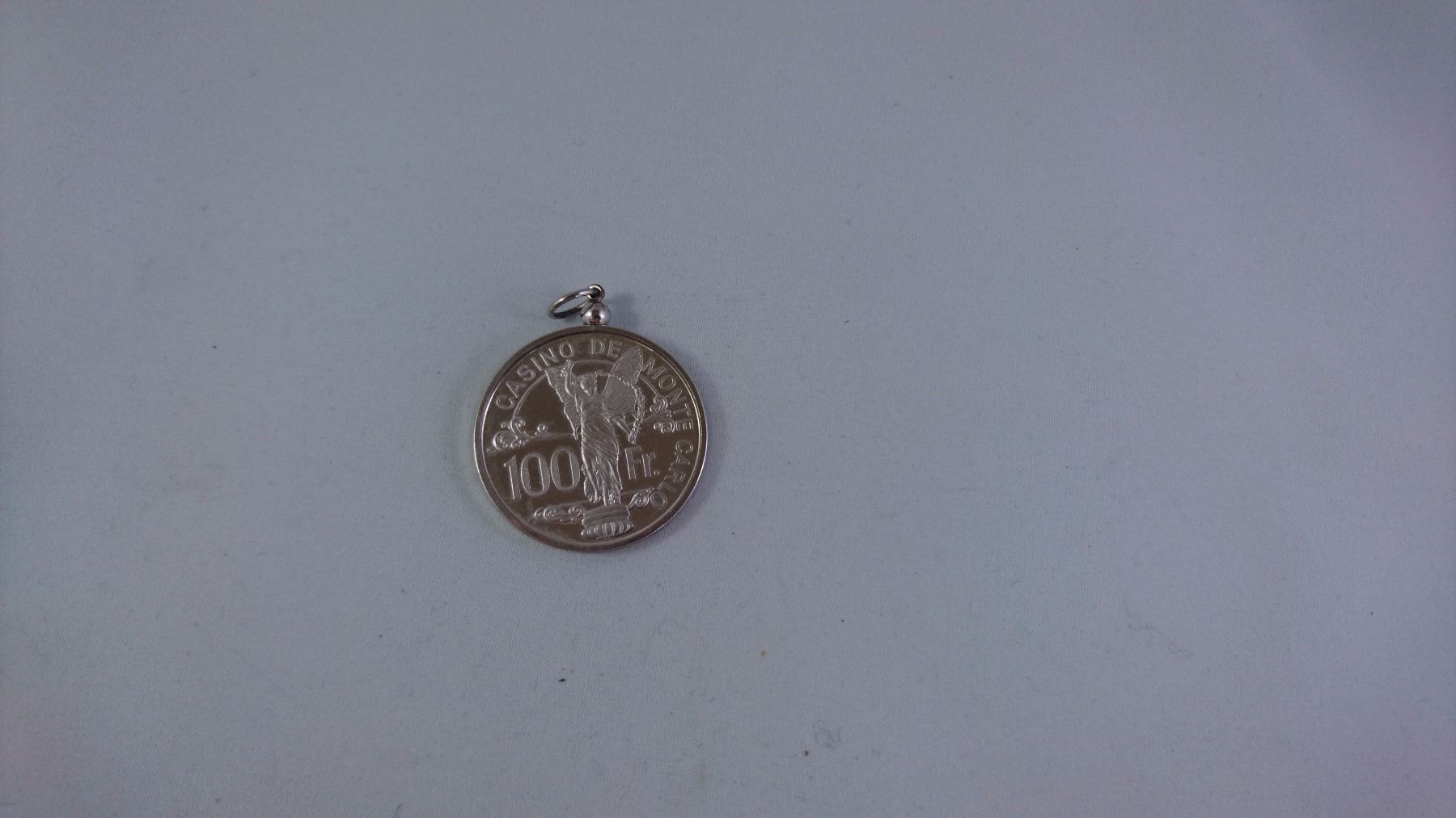 SILVER FRAMED PENDANT SET WITH 1 SILVER 100 FRANC CASINO DEMONTE MEDALLION