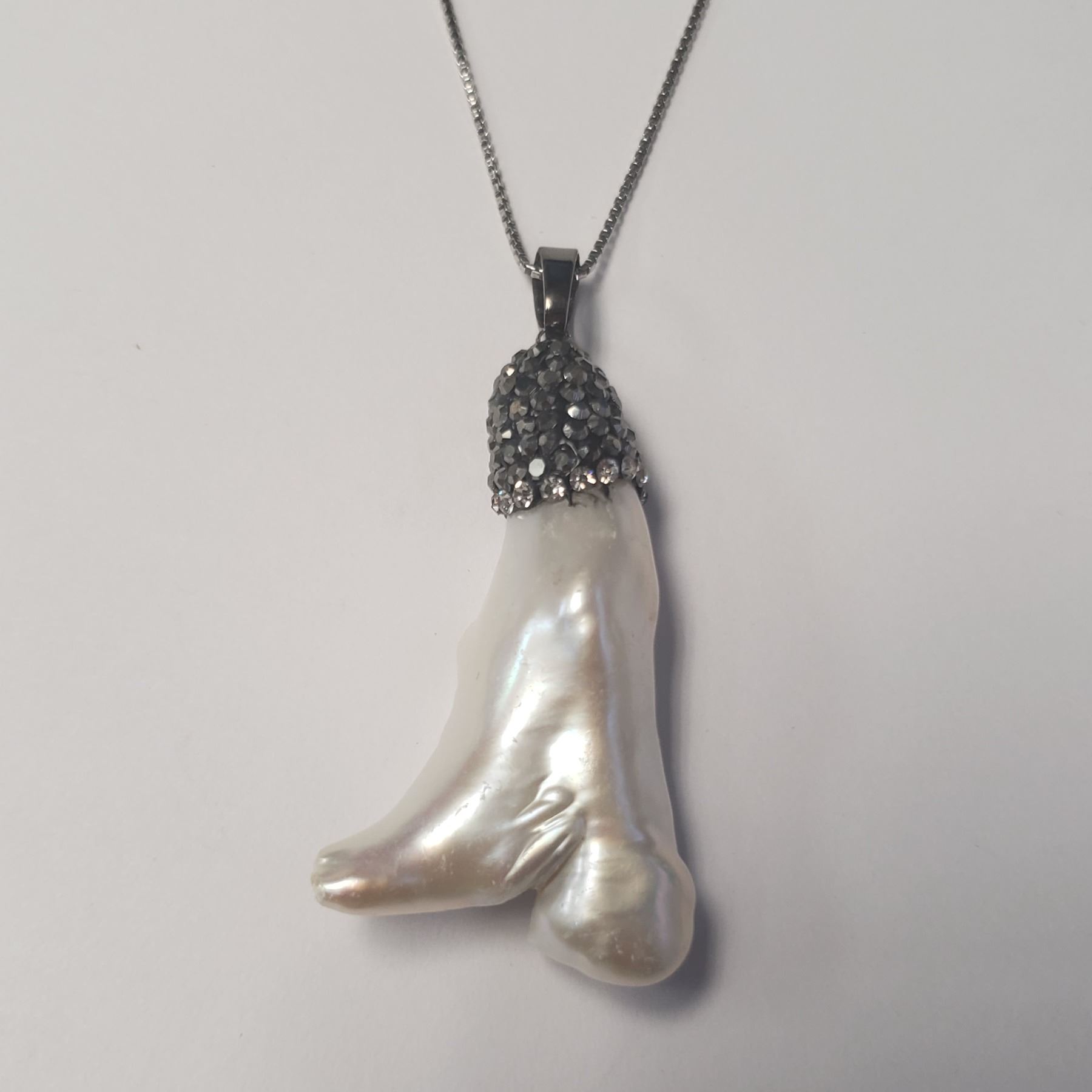 SILVER FREE FORM PEARL AND MARCASITE 18    NECKLACE