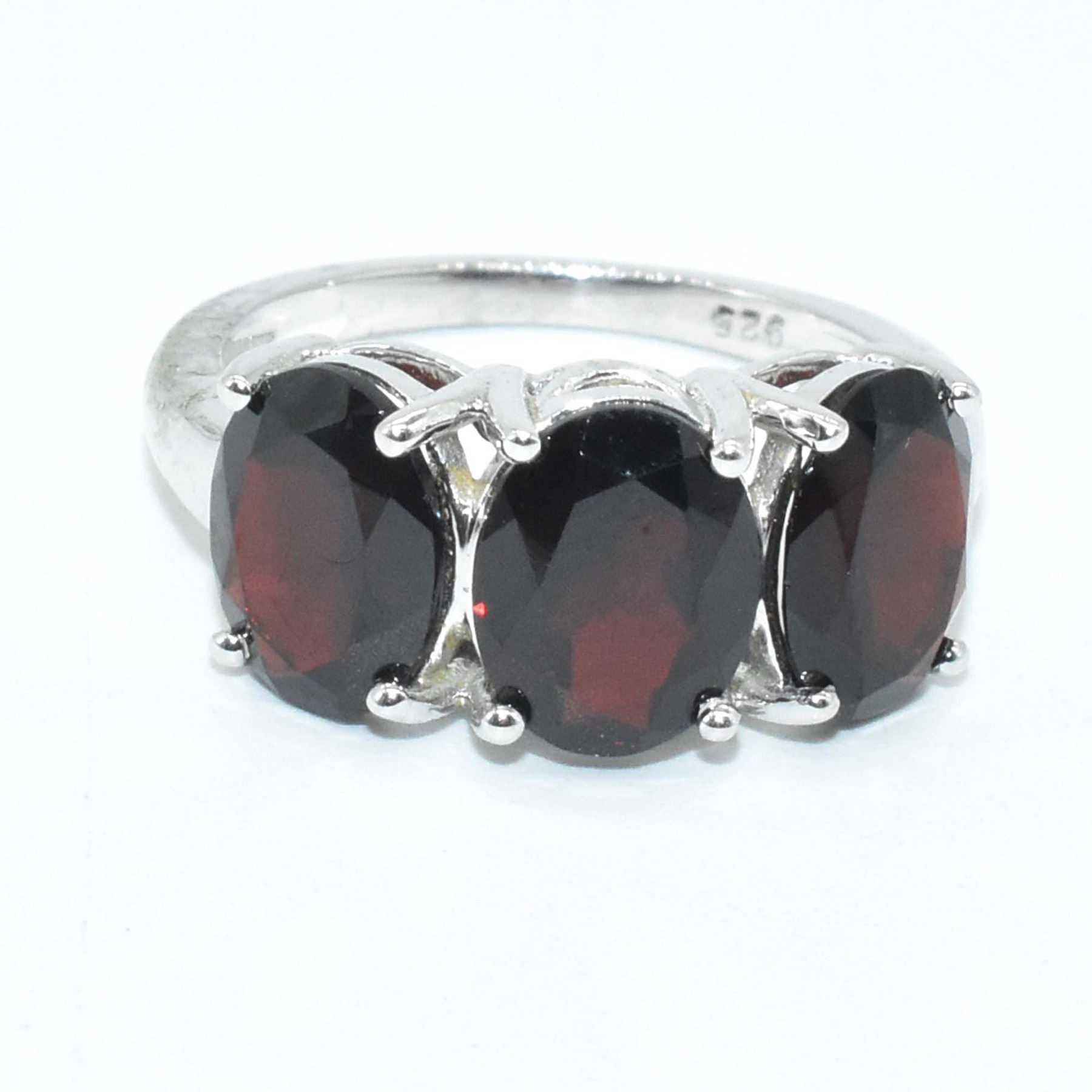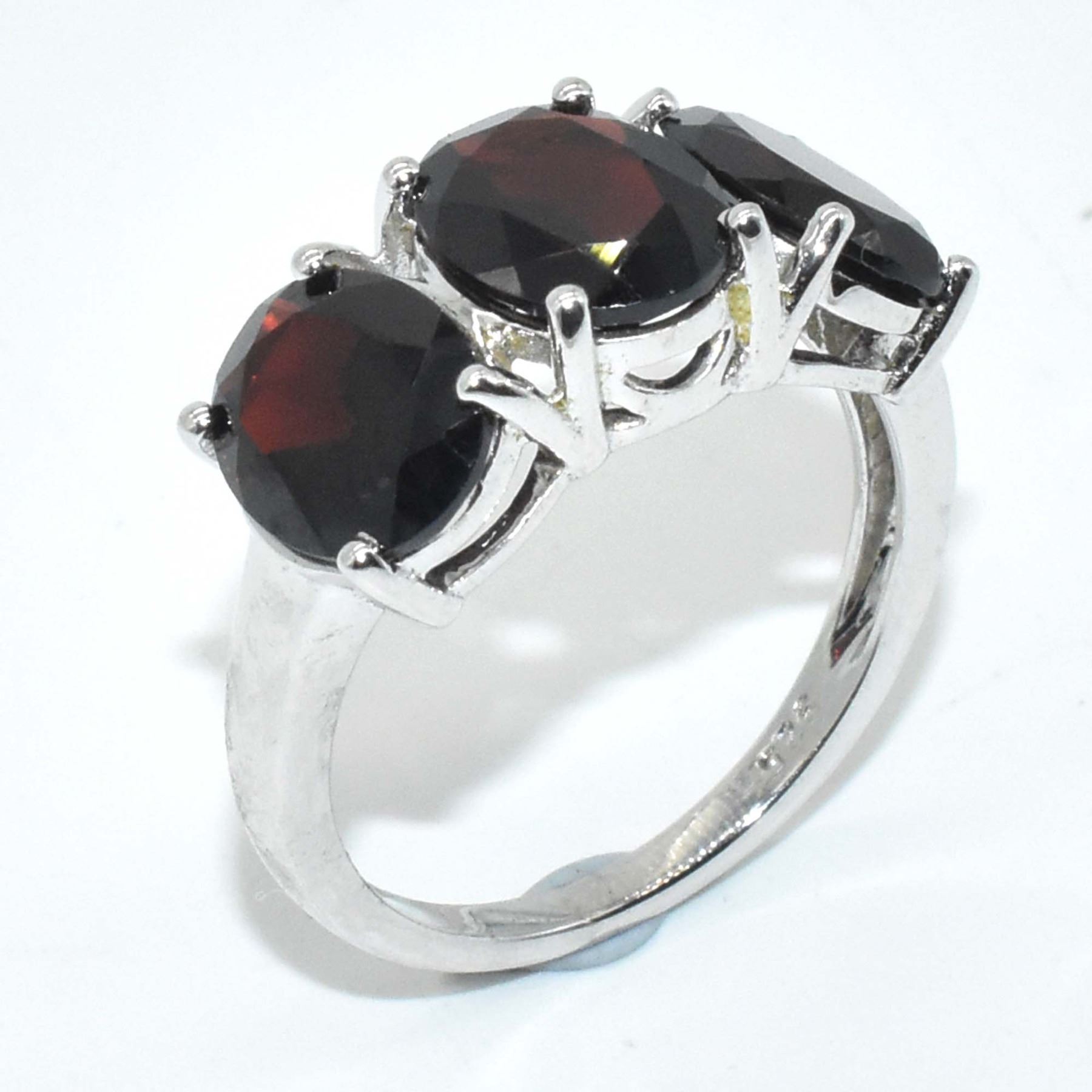 SILVER GARNET(6.5CT) RHODIUM PLATED RING (~SIZE 6.5) (~WEIGHT 3.45G)