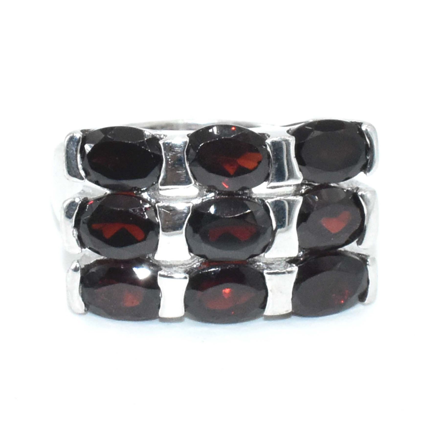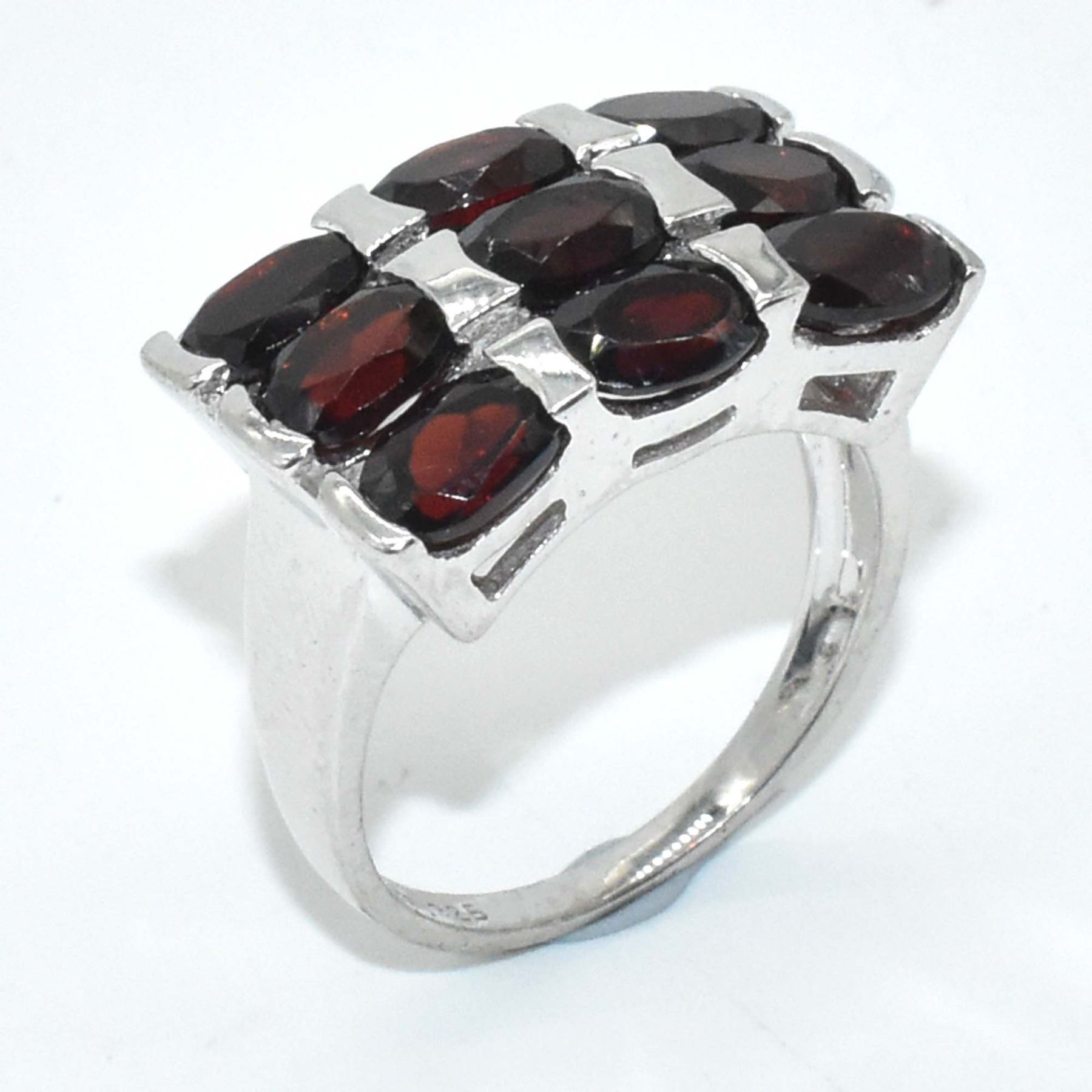SILVER GARNET(6.85CT) RHODIUM PLATED RING (~SIZE 6.5) (~WEIGHT 5.65G)