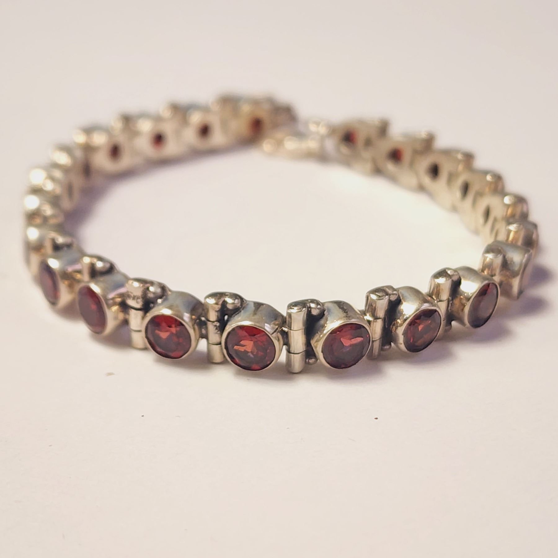 SILVER GARNET 7" BRACELET