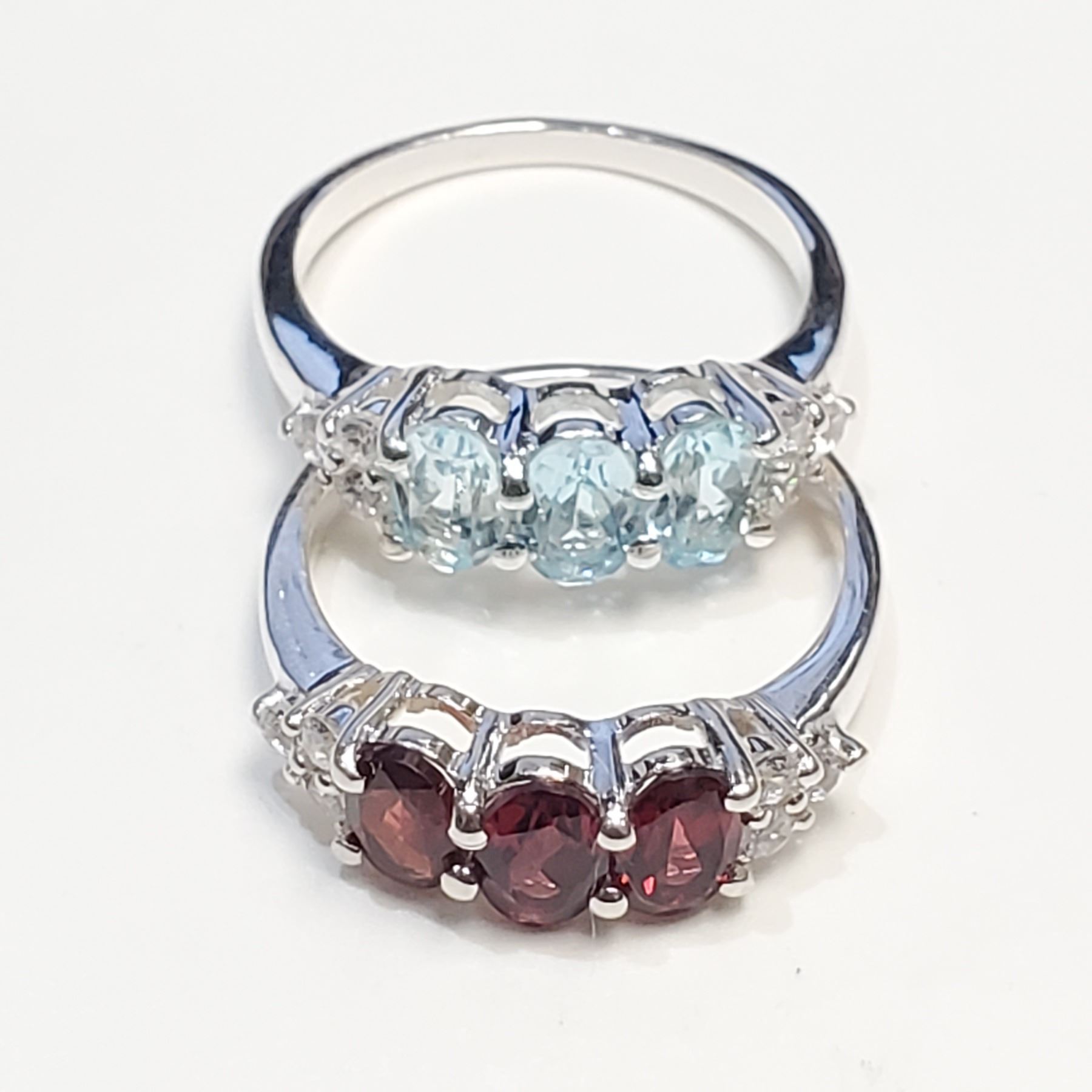 SILVER GARNET BLUE TOPAZ CZ(2.7CT) RING SIZE 7