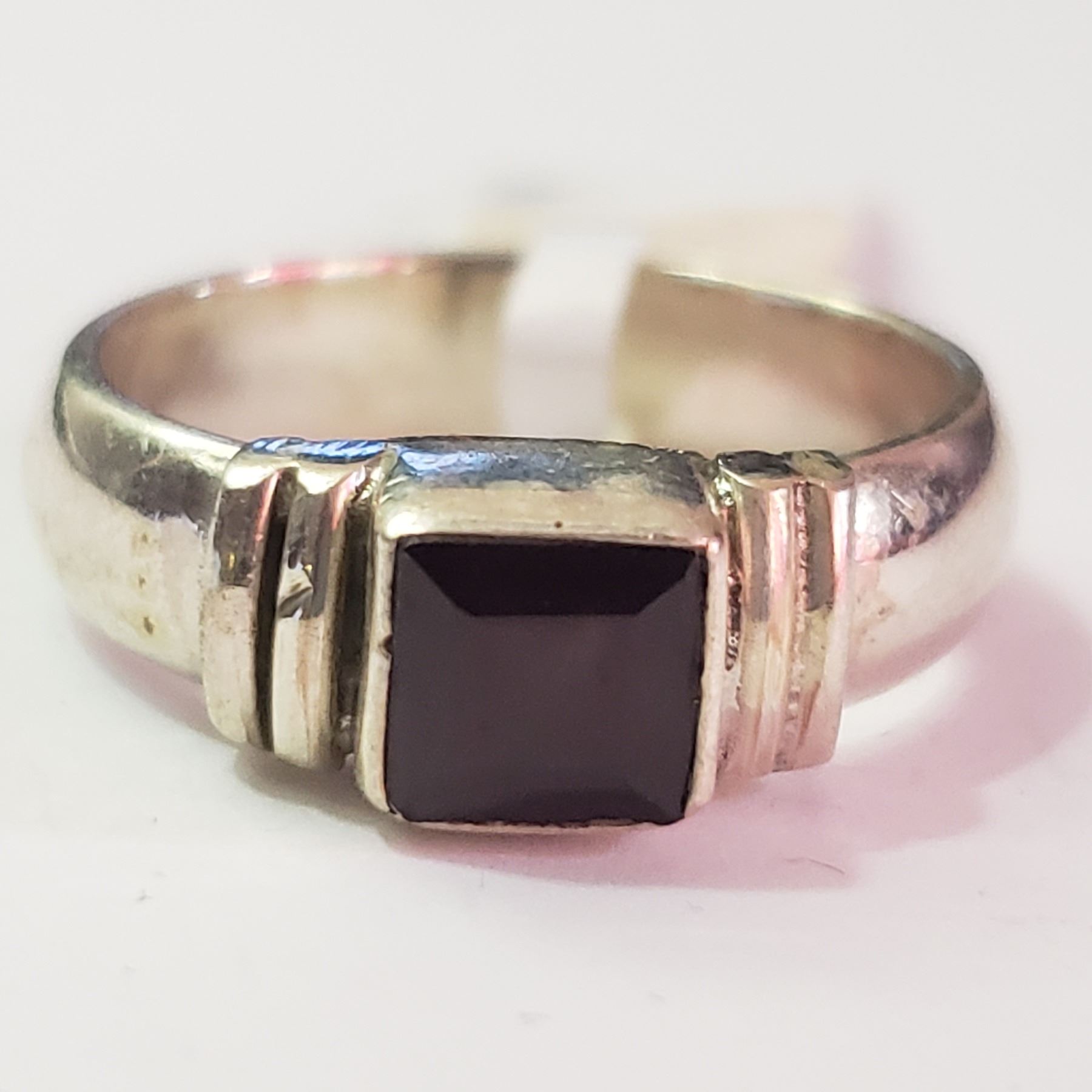 SILVER GARNET RING (SIZE 4) (WEIGHT 4.07G)