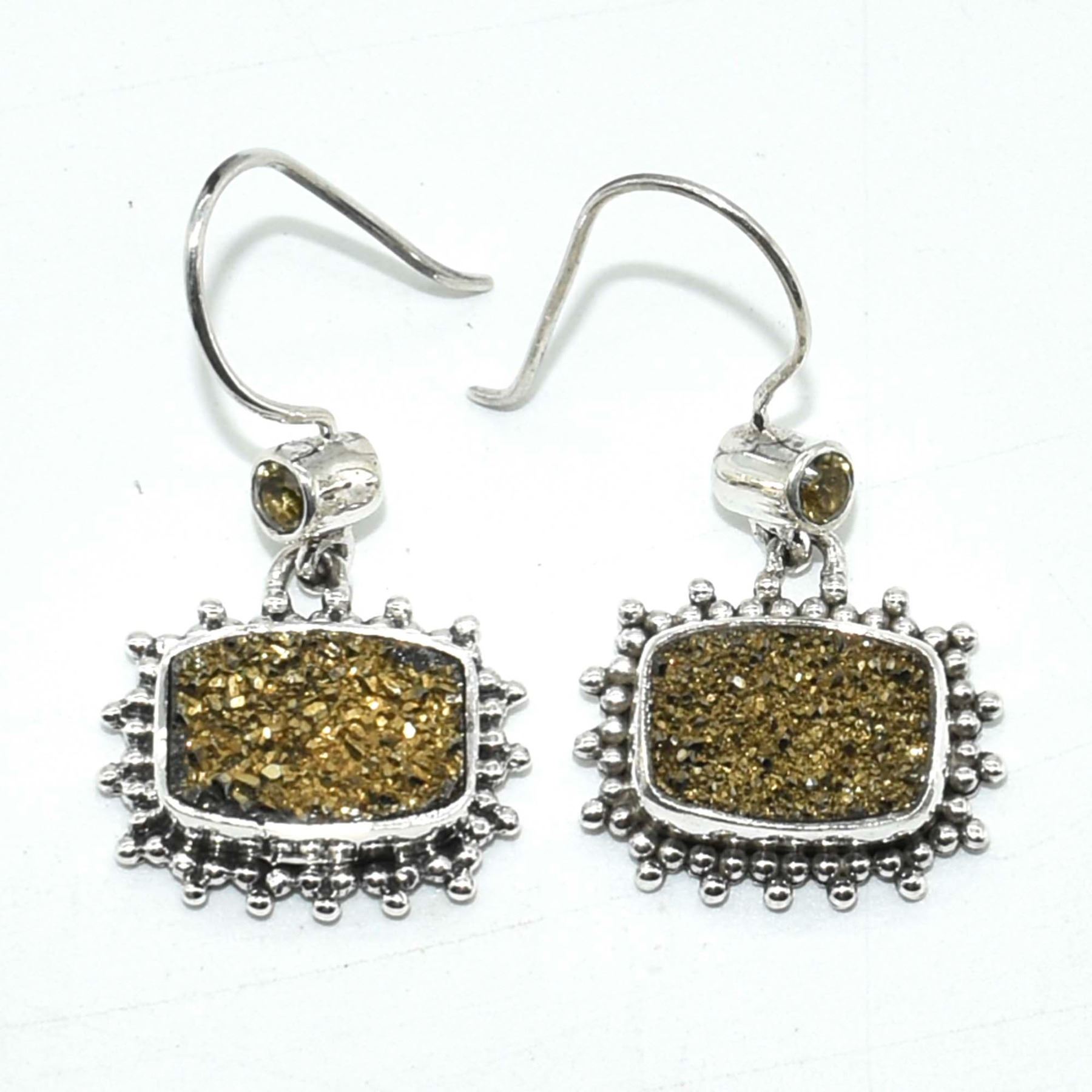 SILVER GOLDEN DRUZY(5.4CT) HAND MADE EARRINGS (~WEIGHT 7.25G)