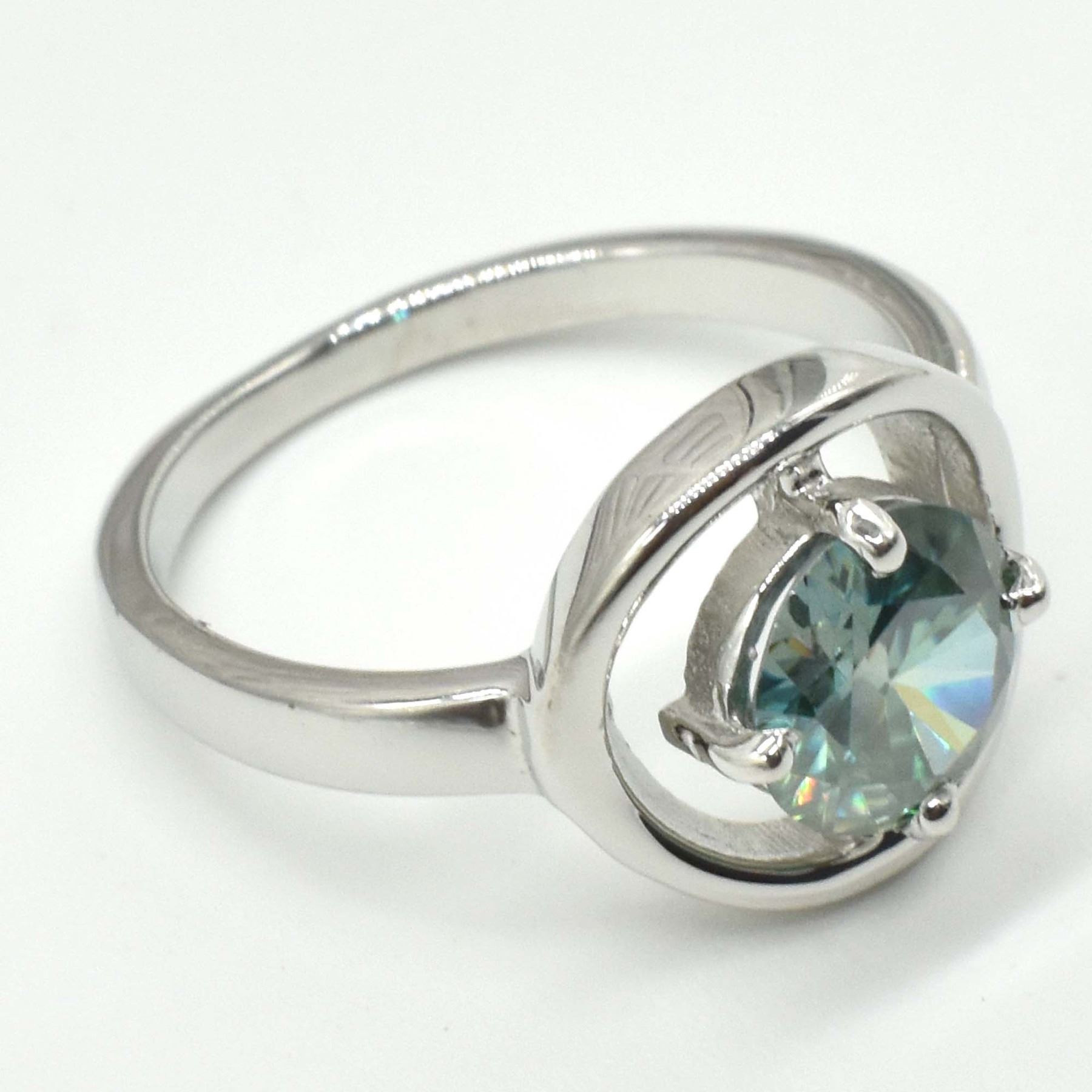 SILVER GREENISH BLUE MOISSANITE (ROUND 7.5 MM)(3.1CT) RHODIUM PLATED TEST AND LOOKS BETTER THAN DIAMOND RING (~WEIGHT 3.1G)
