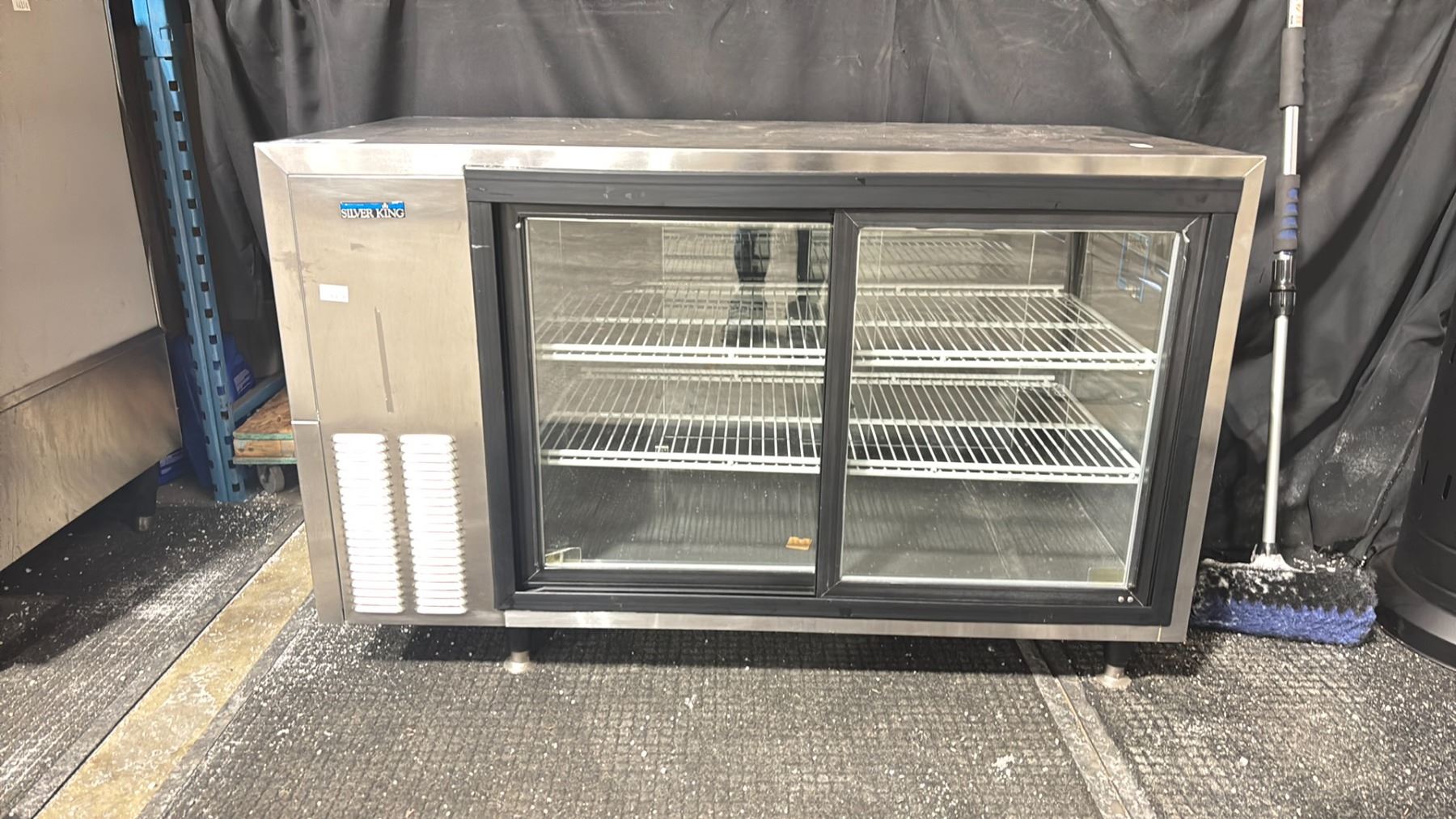 SILVER KING SKDC48PT STAINLESS STEEL DUAL SLIDING DOOR DOUBLE SIDED COMMERCIAL ELECTRIC COOLED MERCHANDISER