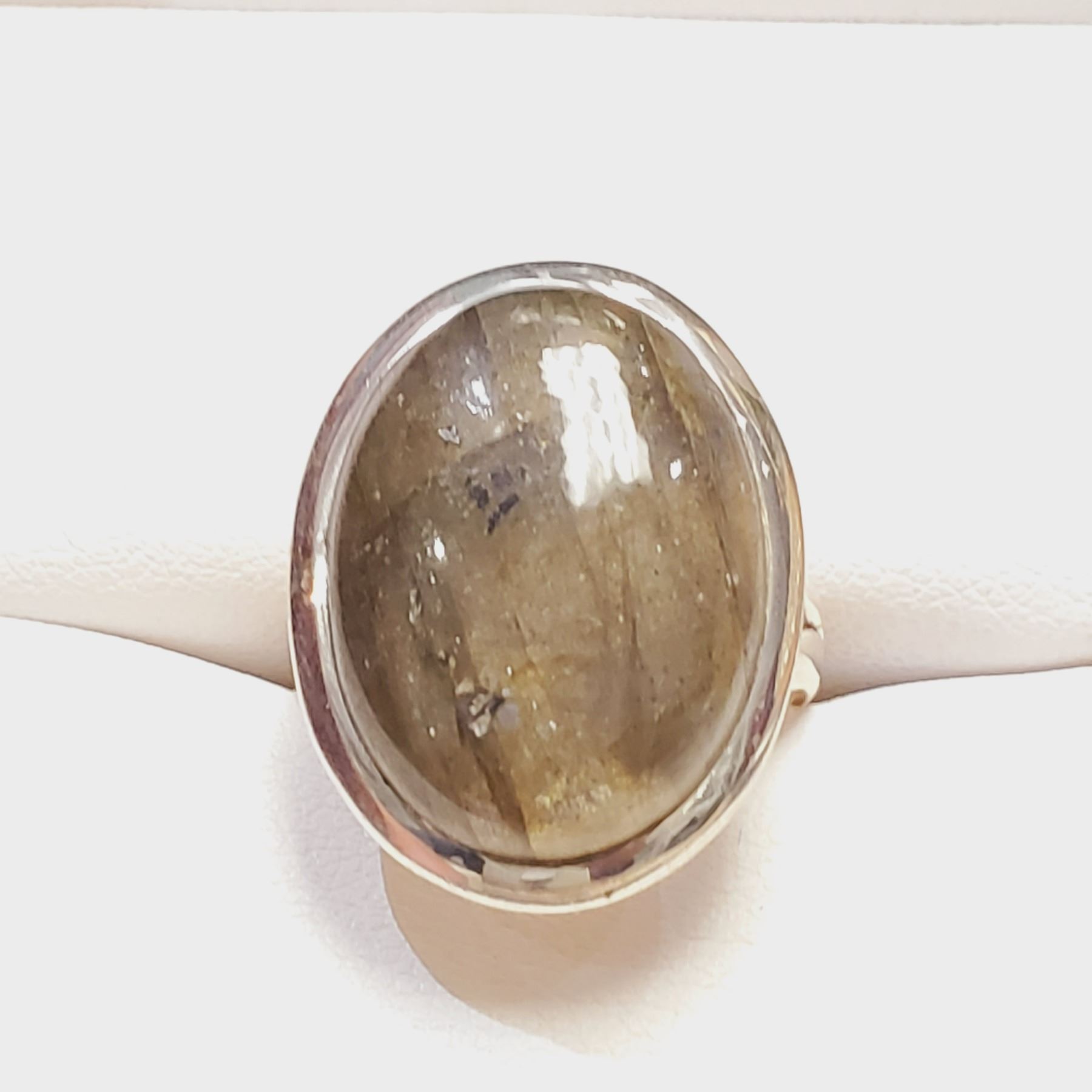 SILVER LABRADORITE RING (~SIZE 7.5)(RING IS RESIZABLE FOR $40) (~WEIGHT 8G)