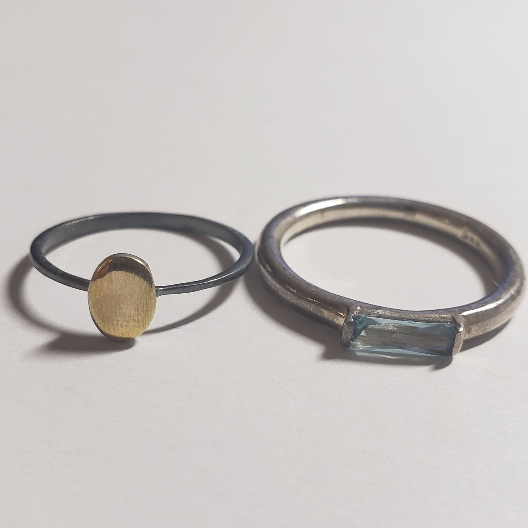 SILVER LOT OF 2 BLUE TOPAZ RING (WEIGHT 4.3G) SIZE 11 & 7