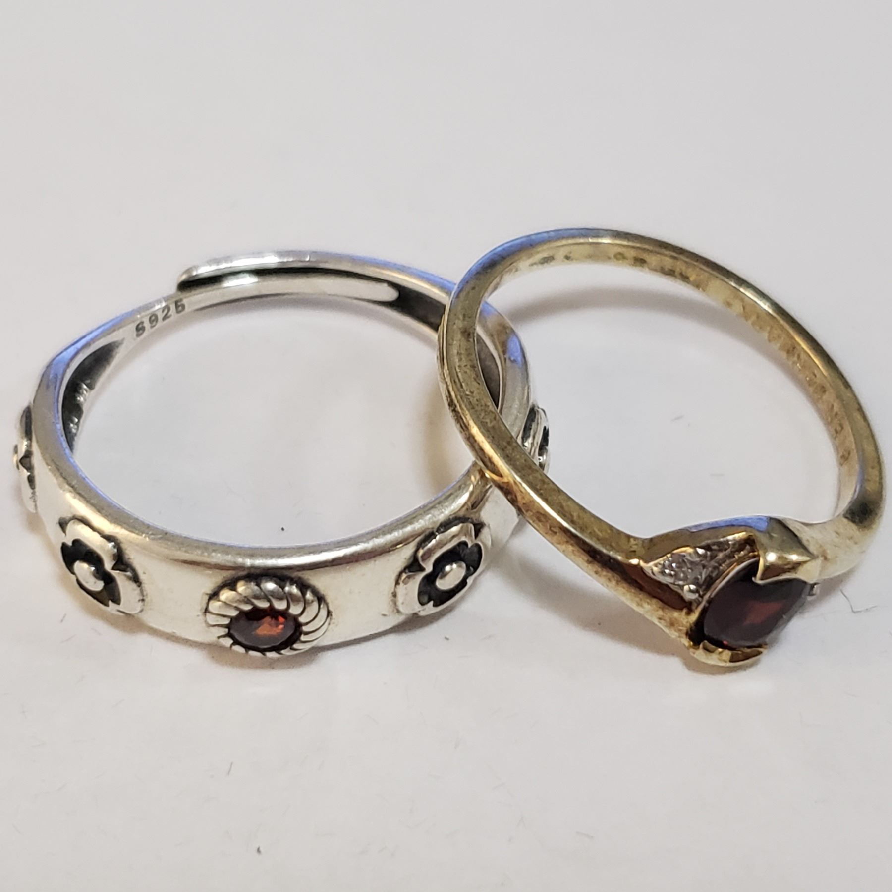 SILVER LOT OF 2 GARNET RING (~WEIGHT 4.41G)