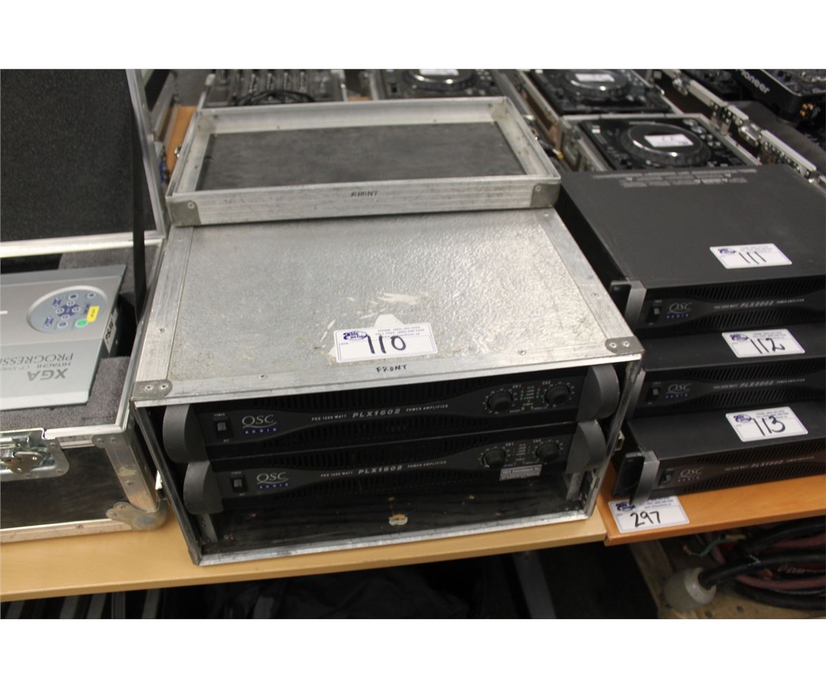 SILVER MOBILE CASE WITH 2 QSC AUDIO PRO 1600WATT POWER AMPLIFIERS