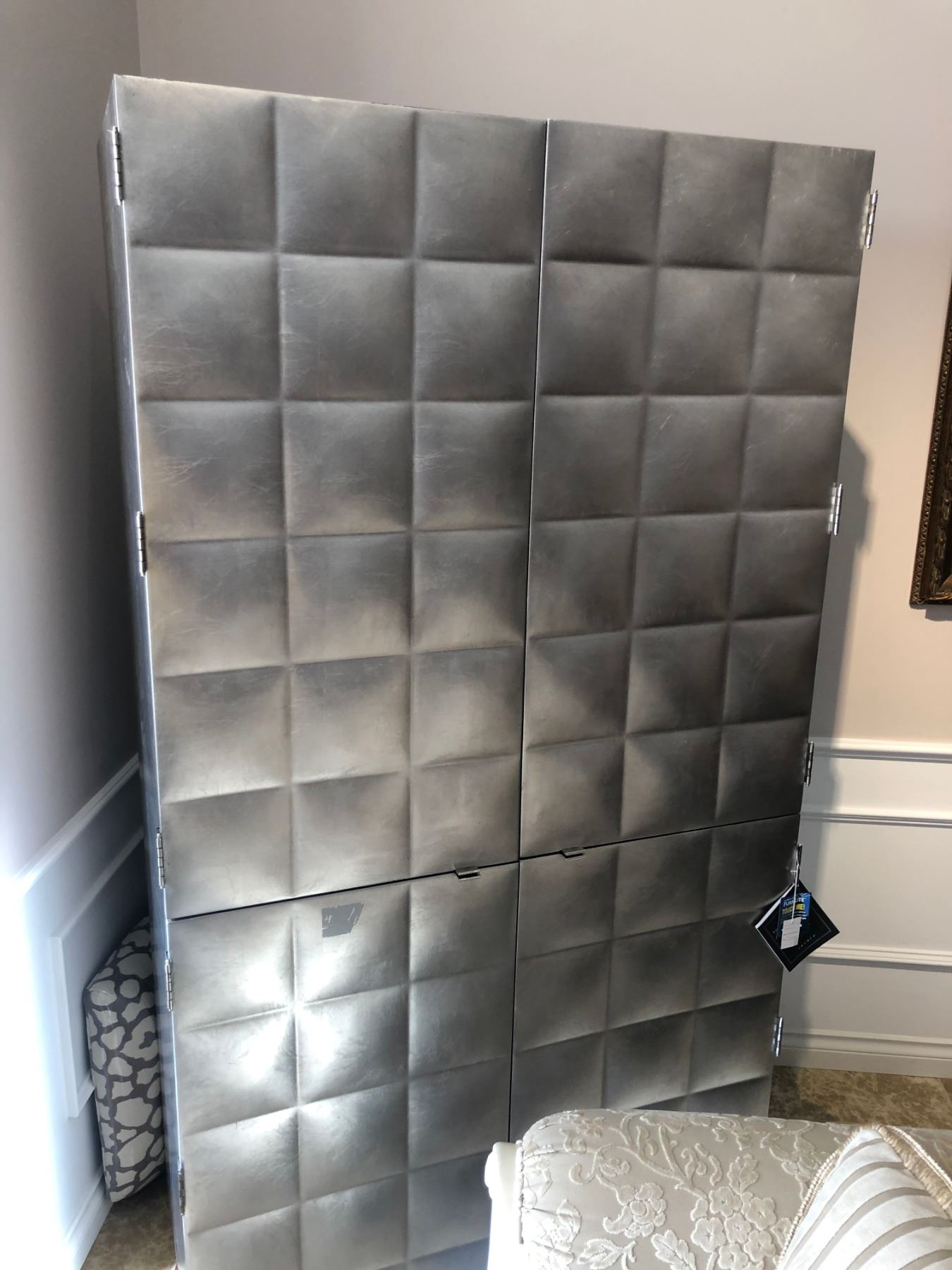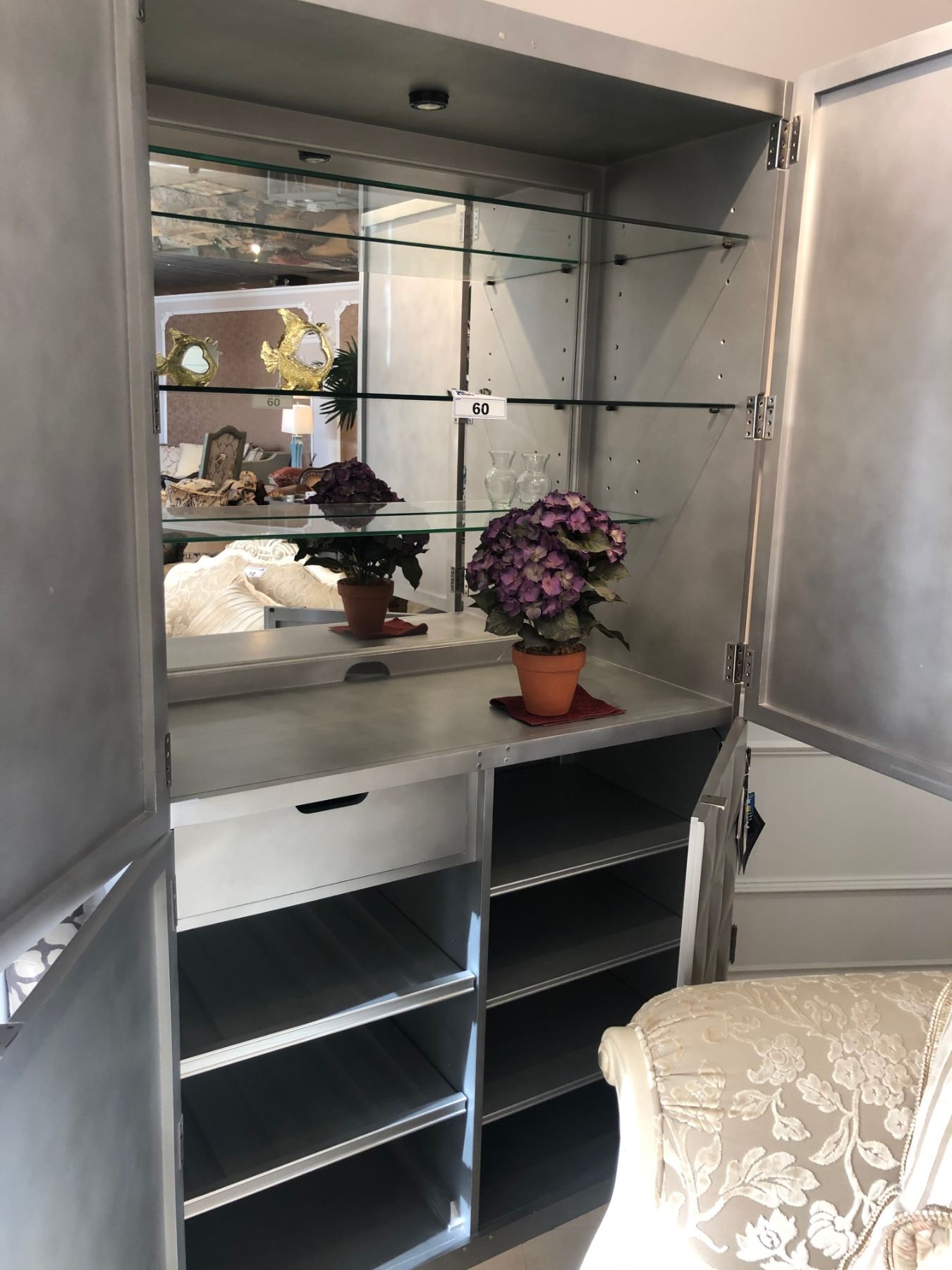 SILVER MODERN LOOK FOUR DOOR BAR CABINET WITH TOUCH LIGHTING.